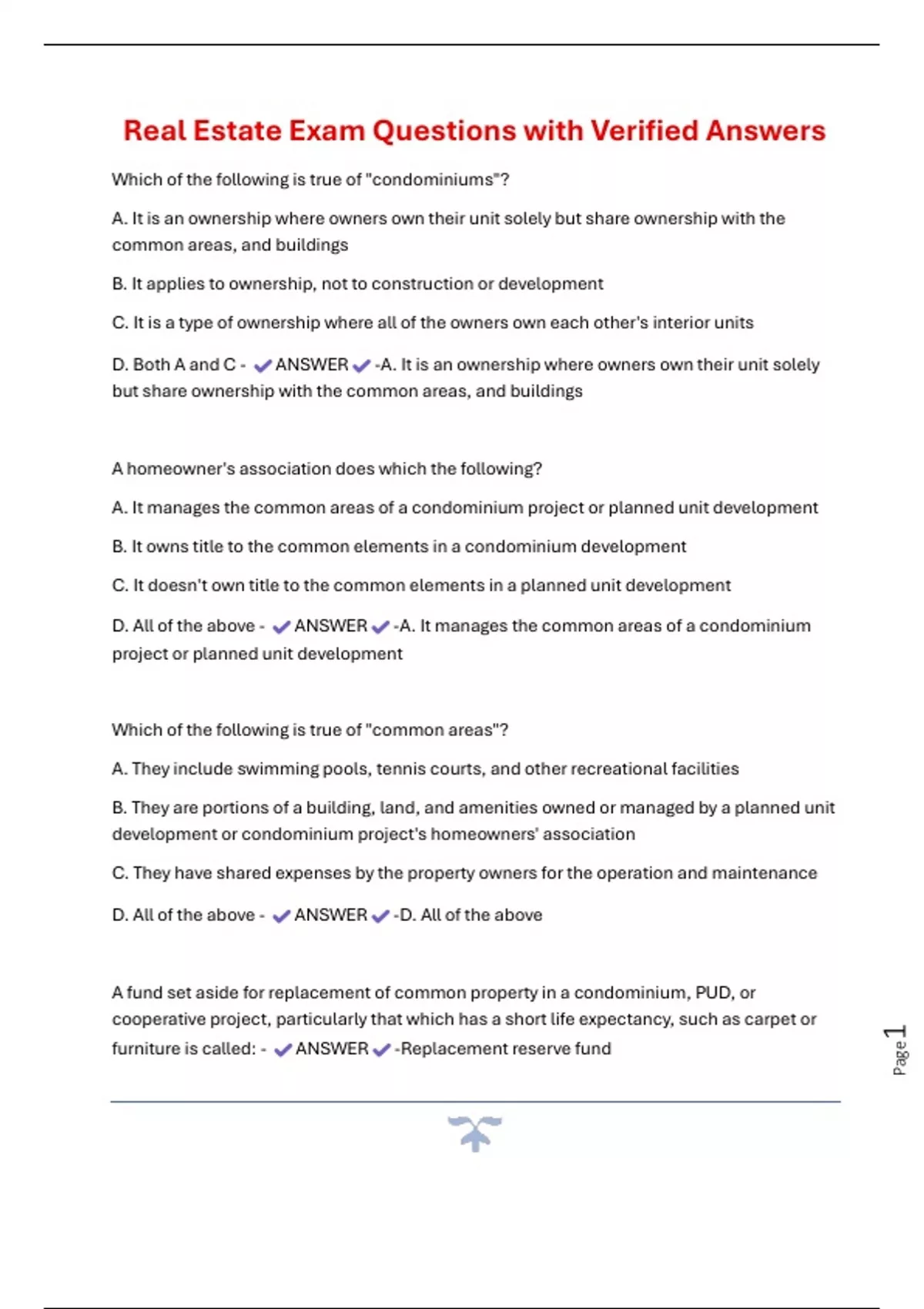 D. All of the above - ANSWER -A. It manages the common areas of a condominium