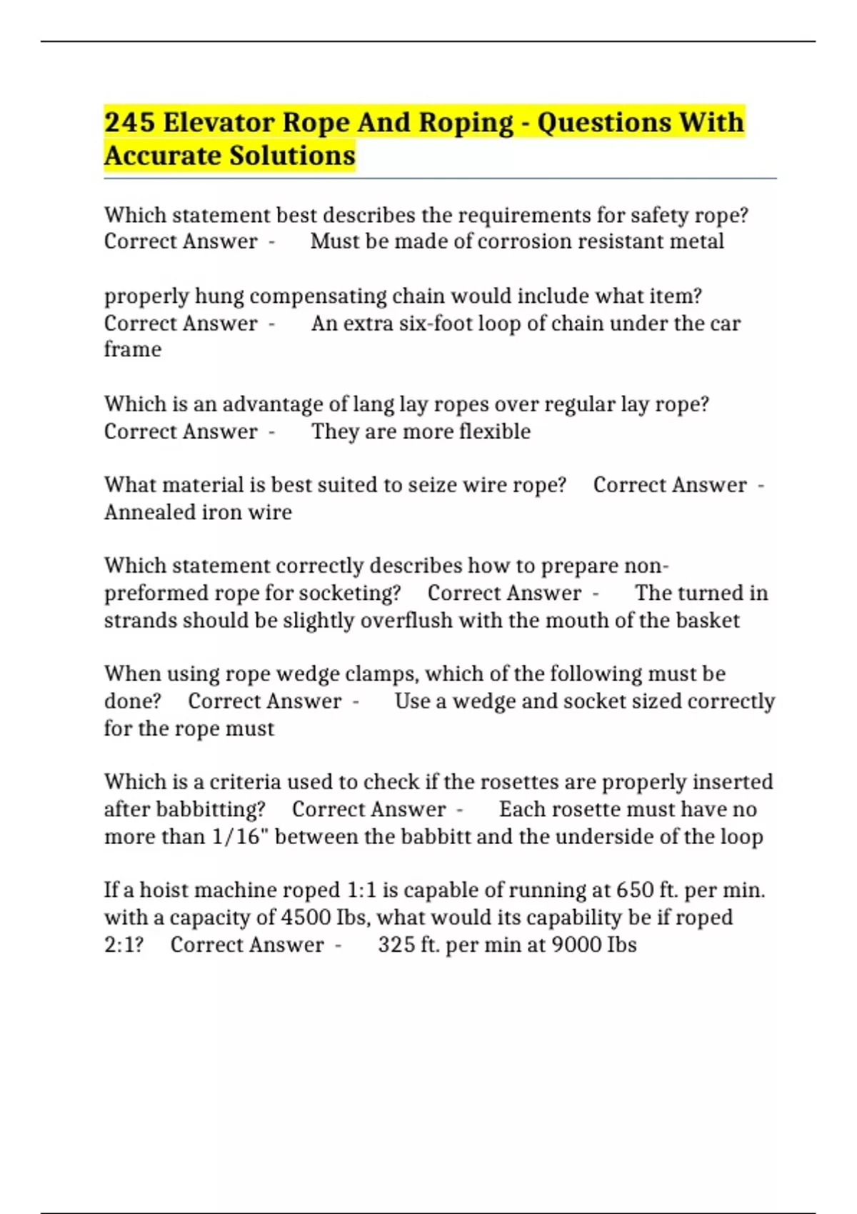 245 Elevator Rope And Roping - Questions With Accurate Solutions