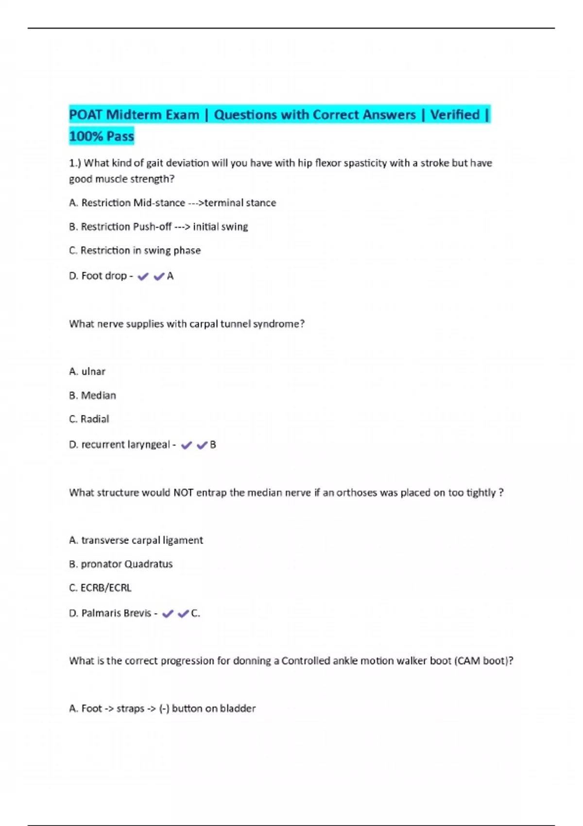 POAT Midterm Exam | Questions with Correct Answers | Verified | 100% Pass
