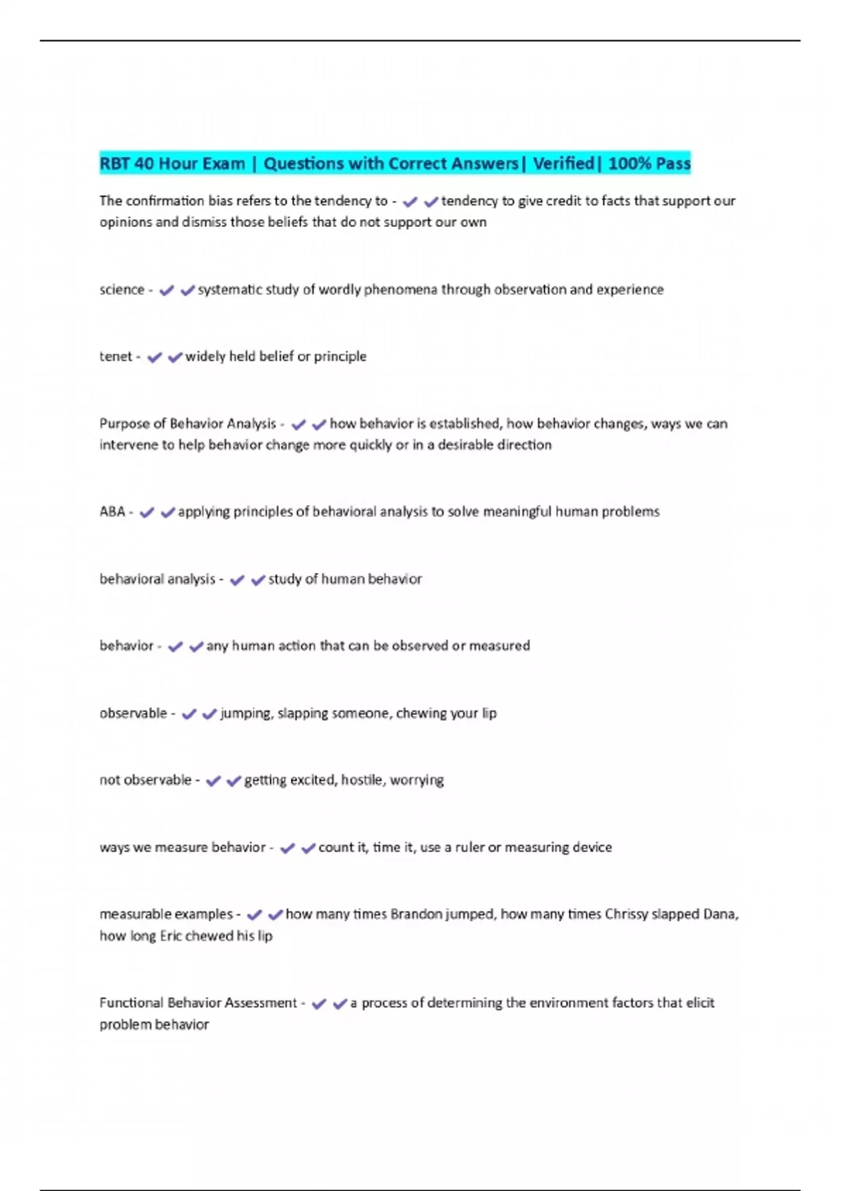 RBT 40 Hour Exam | Questions with Correct Answers| Verified| 100% Pass