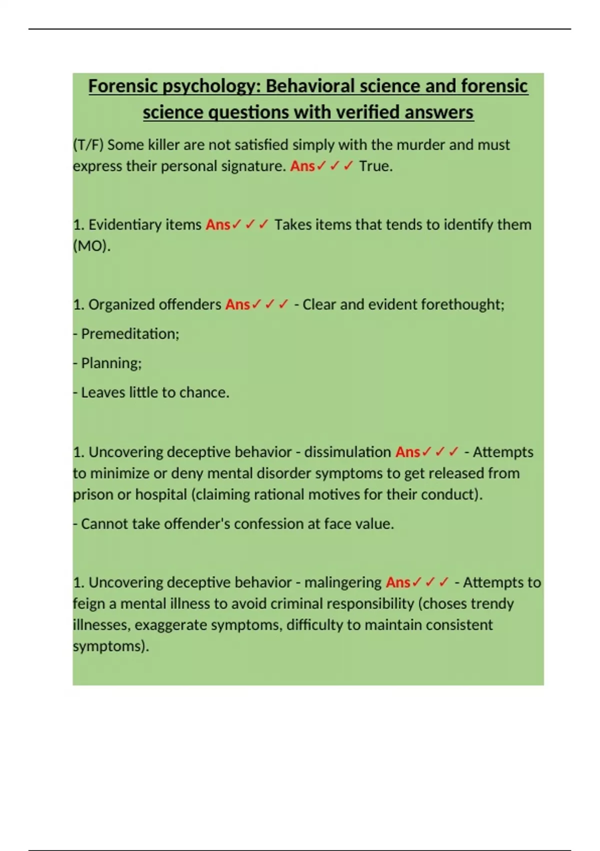 1. Uncovering deceptive behavior - malingering Ans✓✓✓ - Attempts to