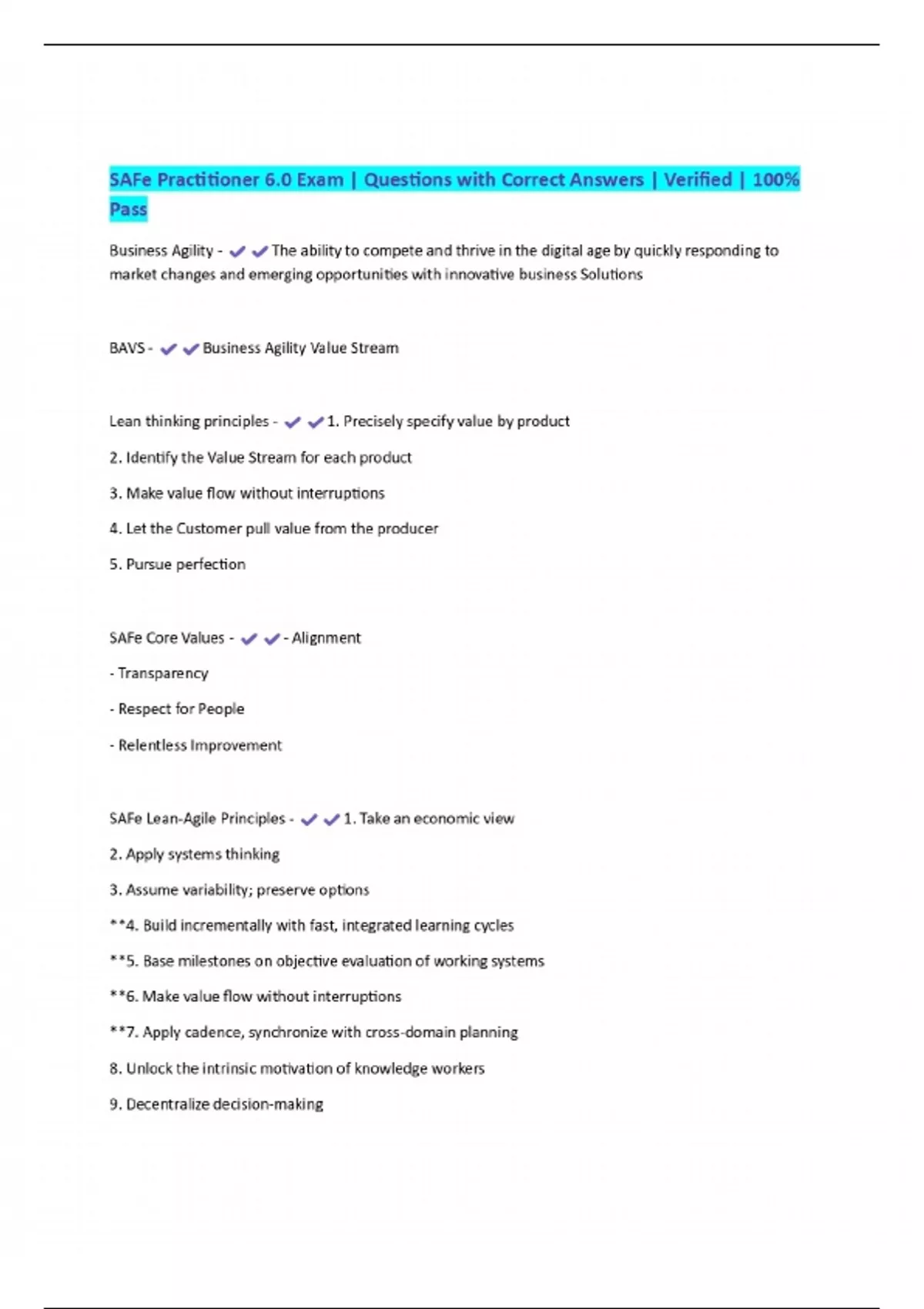SAFe Practitioner 6.0 Exam | Questions with Correct Answers | Verified | 100% Pass