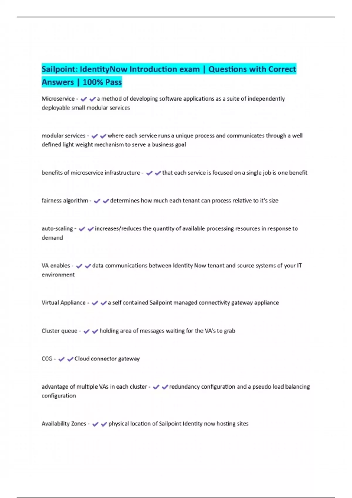 Sailpoint: IdentityNow Introduction exam | Questions with Correct Answers | 100% Pass