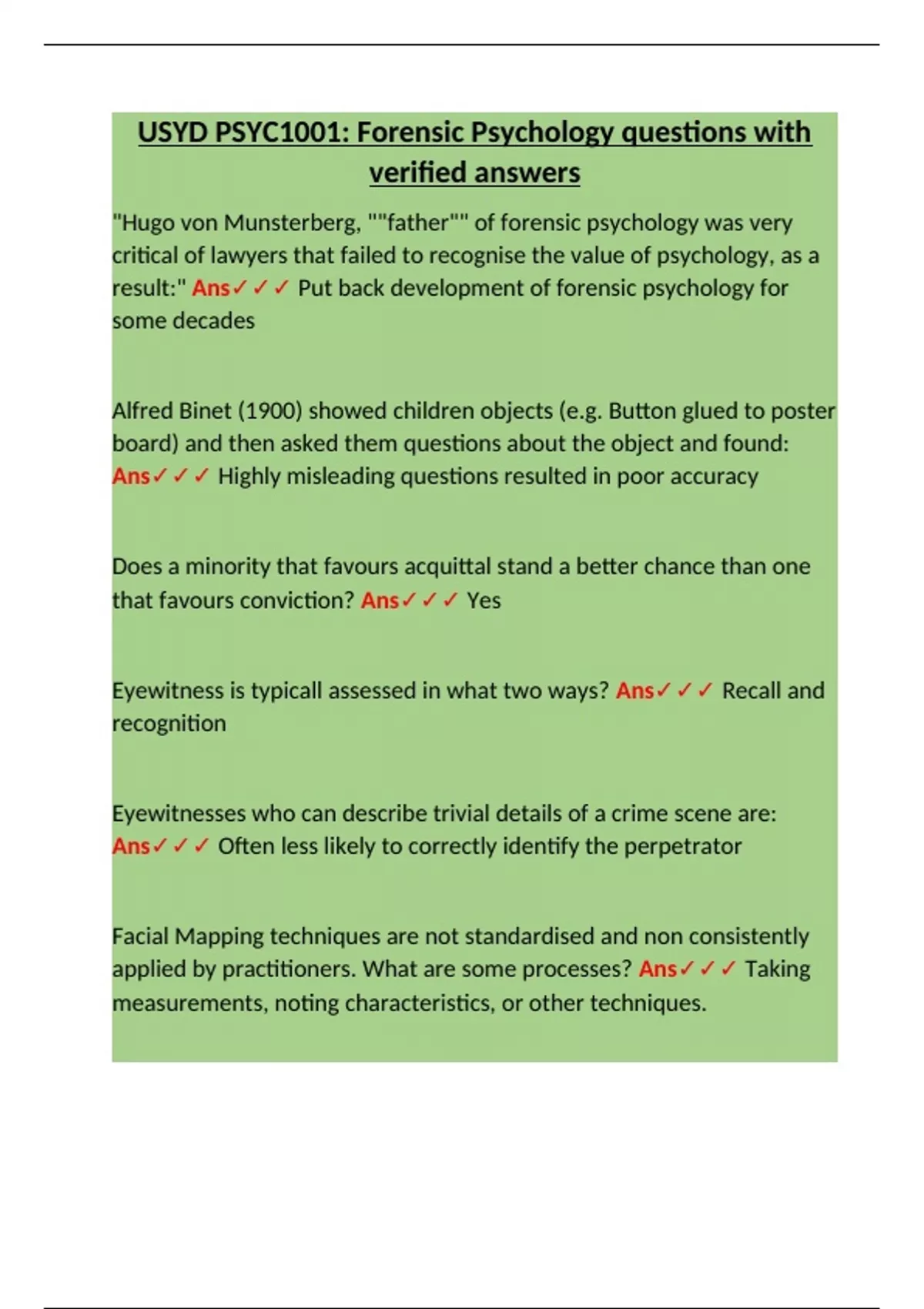 result:" Ans✓✓✓ Put back development of forensic psychology for