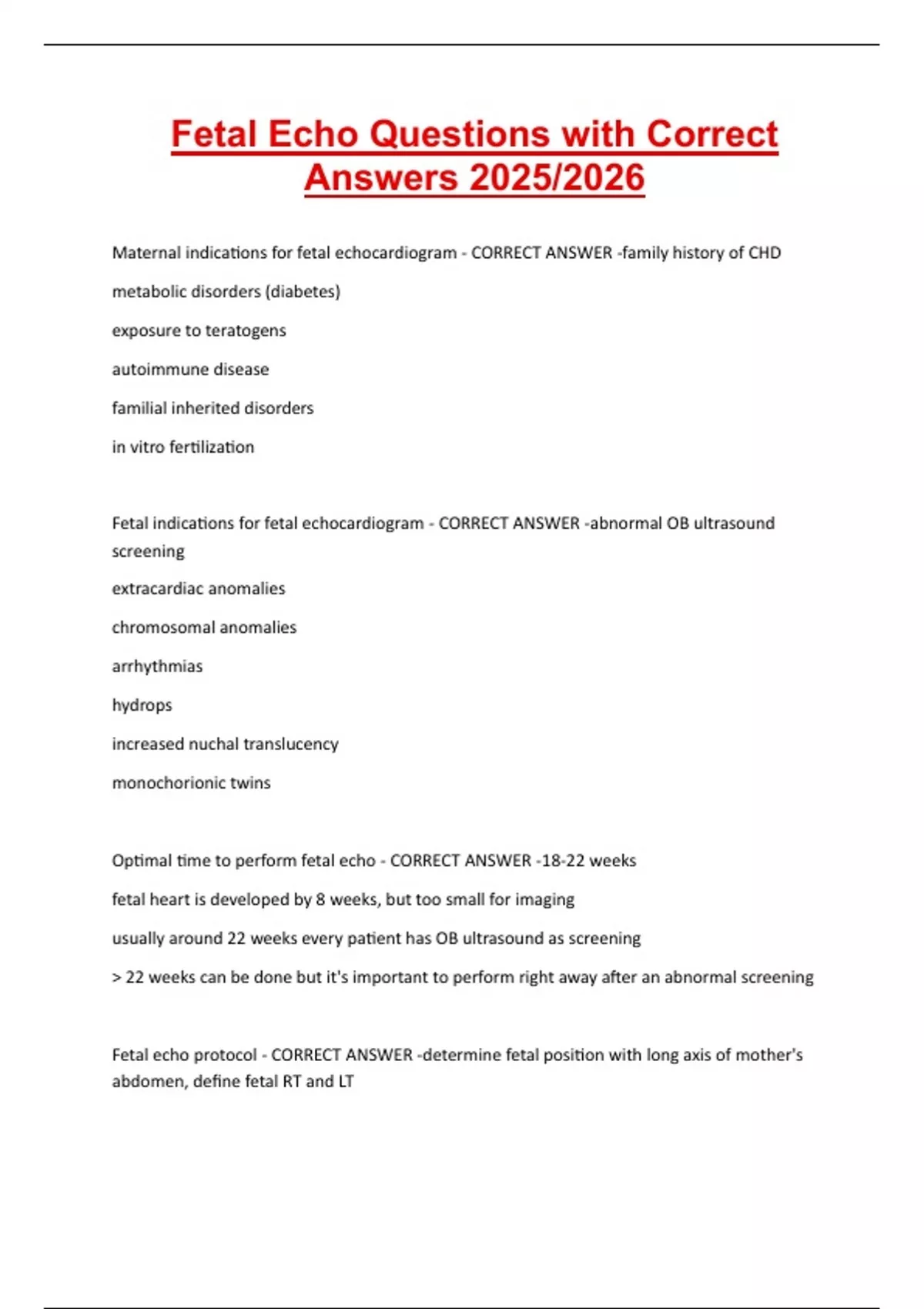 Optimal time to perform fetal echo - CORRECT ANSWER -18-22 weeks