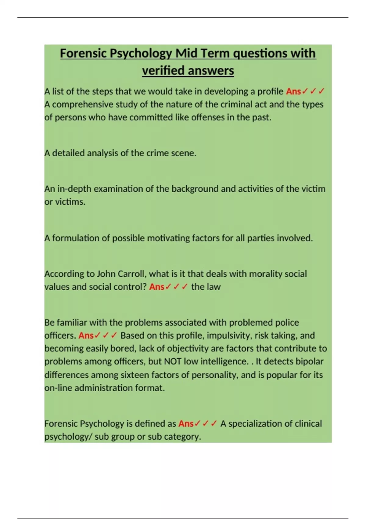 Forensic Psychology is defined as Ans✓✓✓ A specialization of clinical
