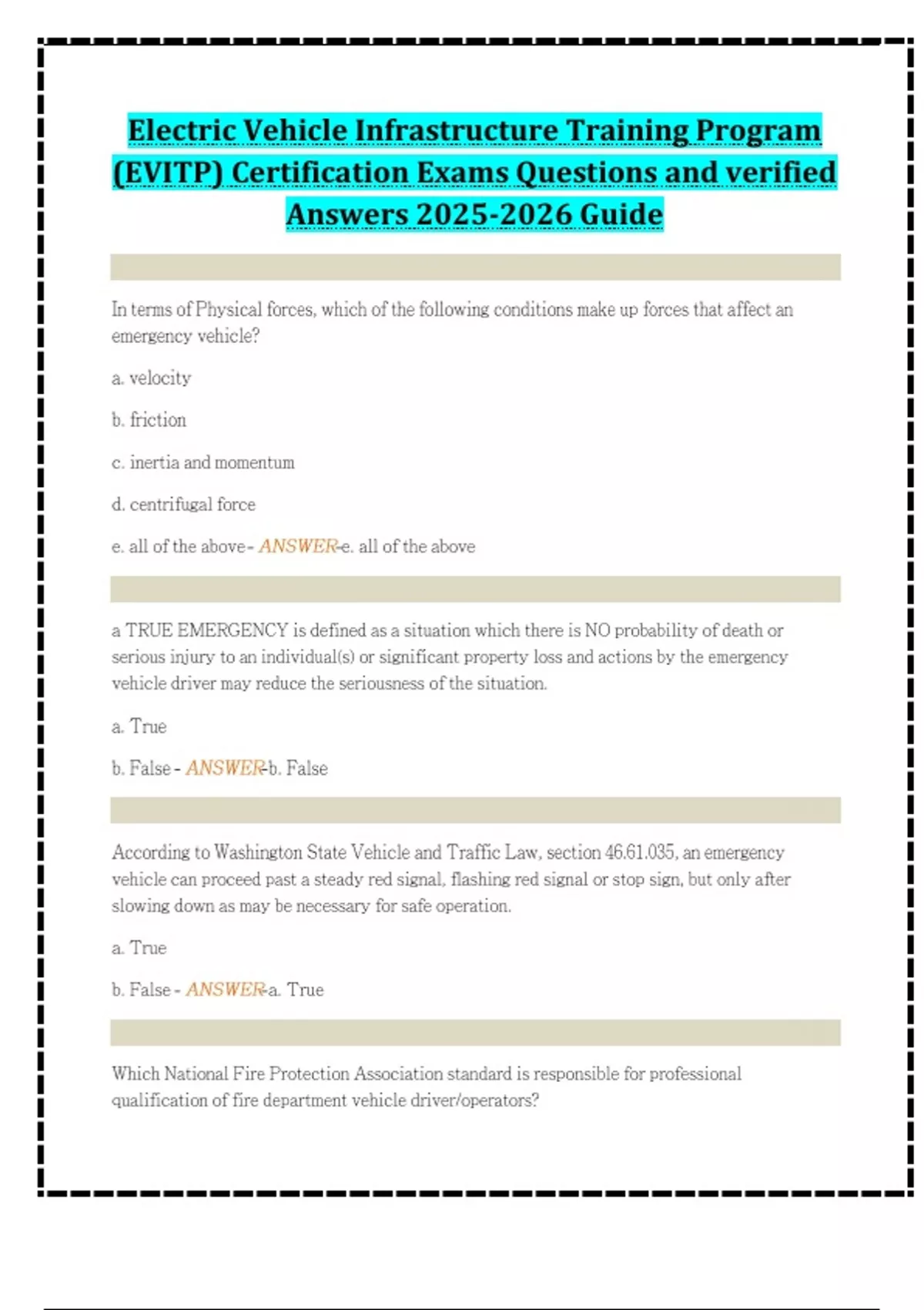 Electric Vehicle Infrastructure Training Program (EVITP) Certification Exams Questions and verified Answers Guide