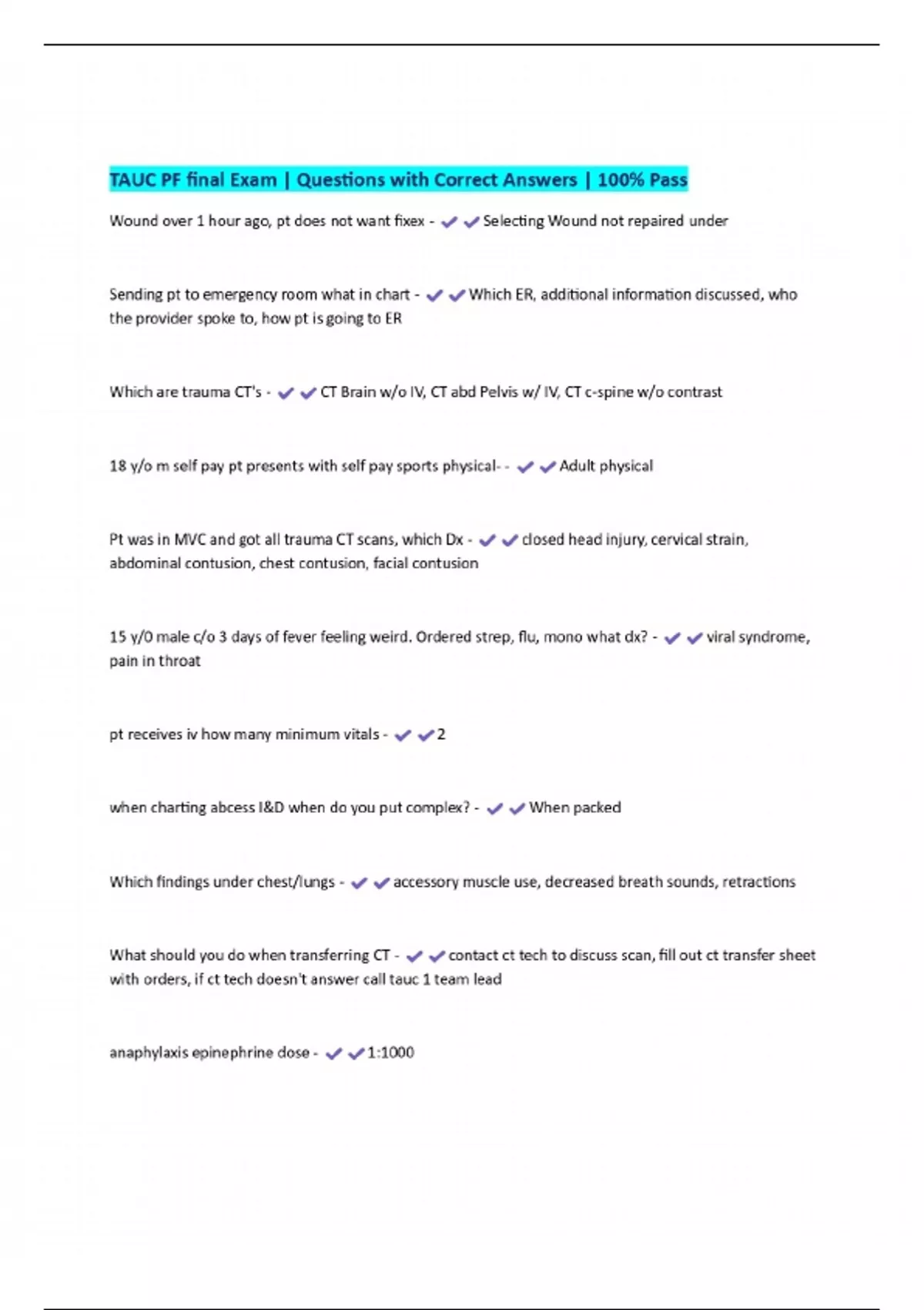TAUC PF final Exam | Questions with Correct Answers | 100% Pass