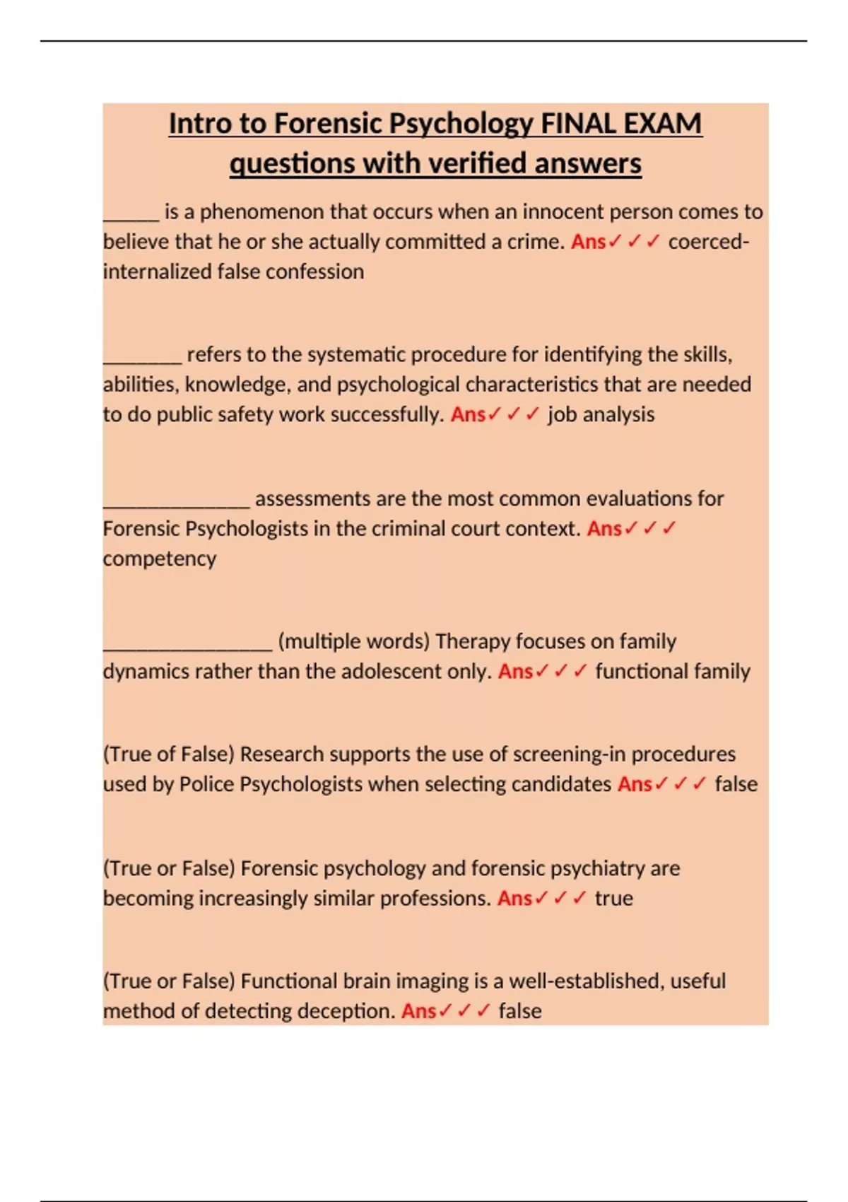used by Police Psychologists when selecting candidates Ans✓✓✓ false