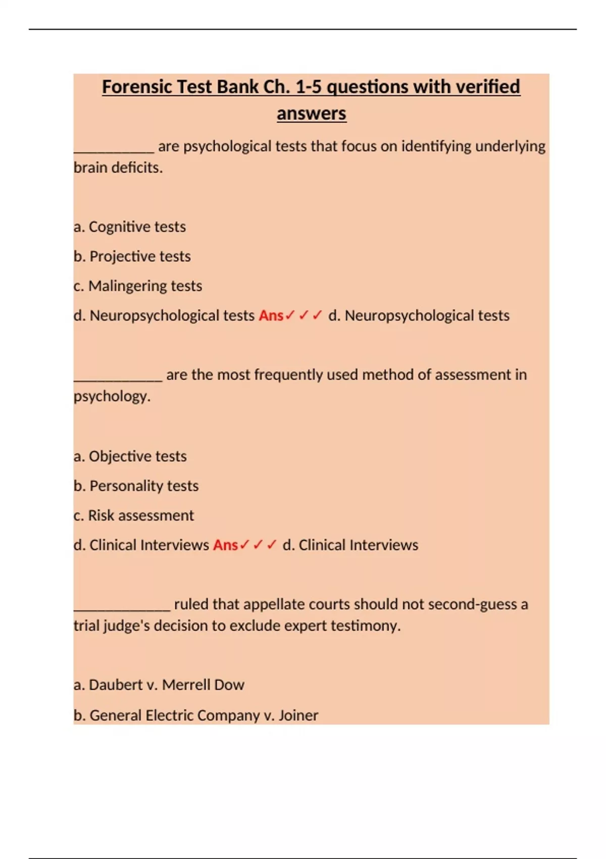 d. Neuropsychological tests Ans✓✓✓ d. Neuropsychological tests