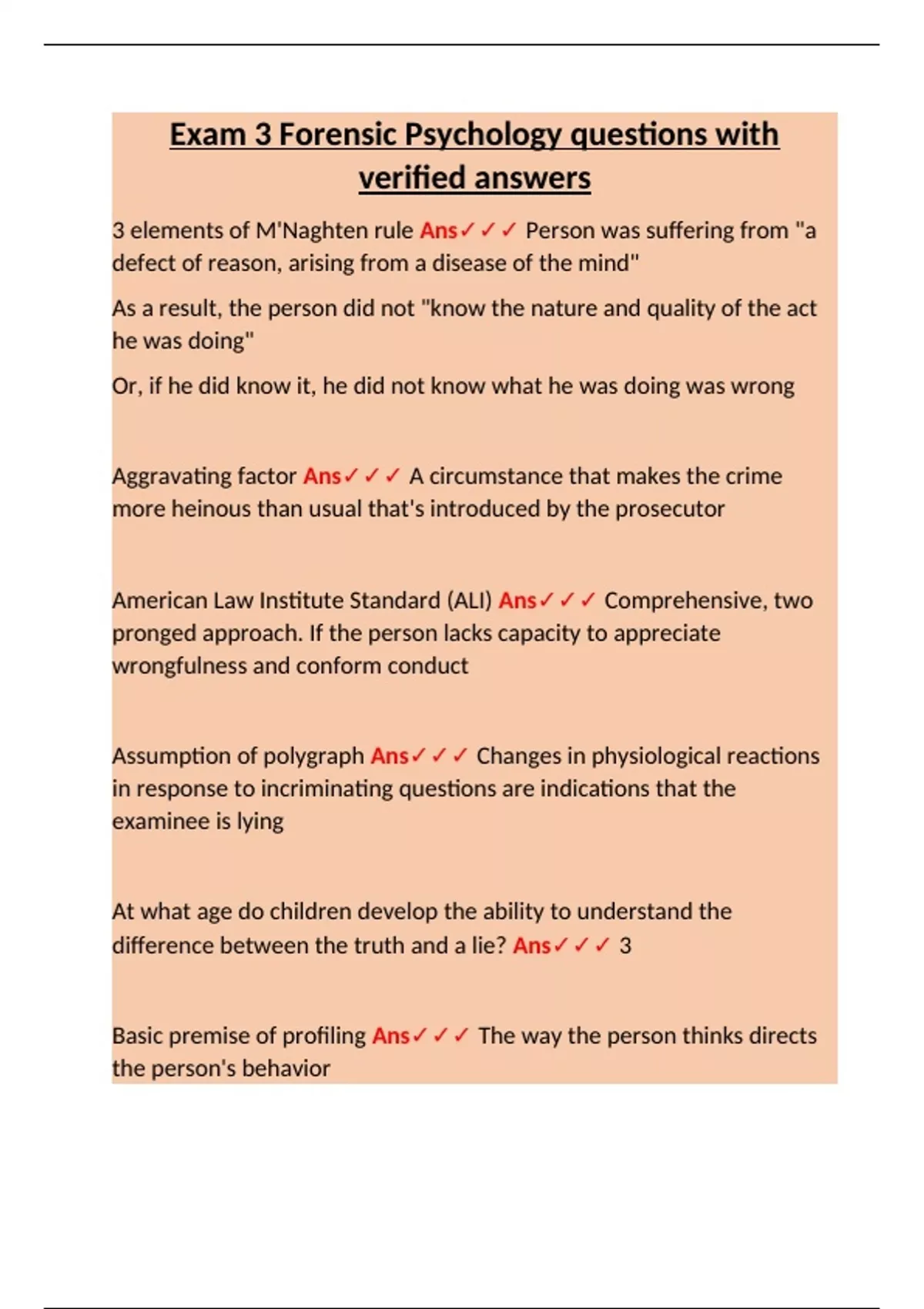 3 elements of M'Naghten rule Ans✓✓✓ Person was suffering from "a