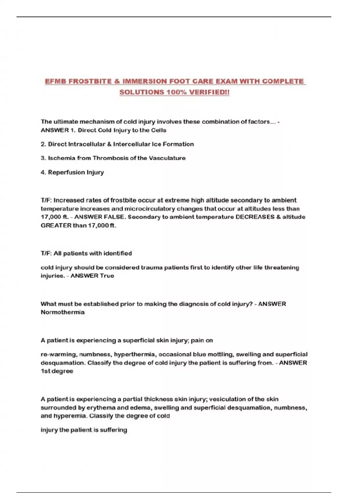 EFMB FROSTBITE & IMMERSION FOOT CARE EXAM WITH COMPLETE SOLUTIONS 100% VERIFIED!!...