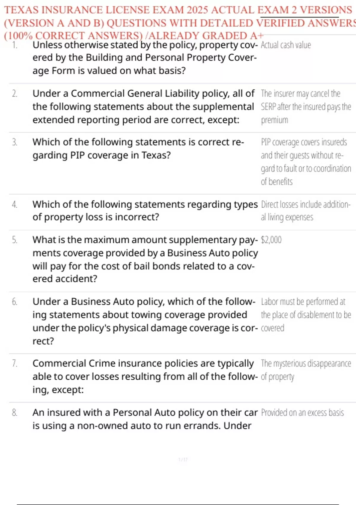 TEXAS INSURANCE LICENSE EXAM 2025 ACTUAL EXAM 2 VERSIONS