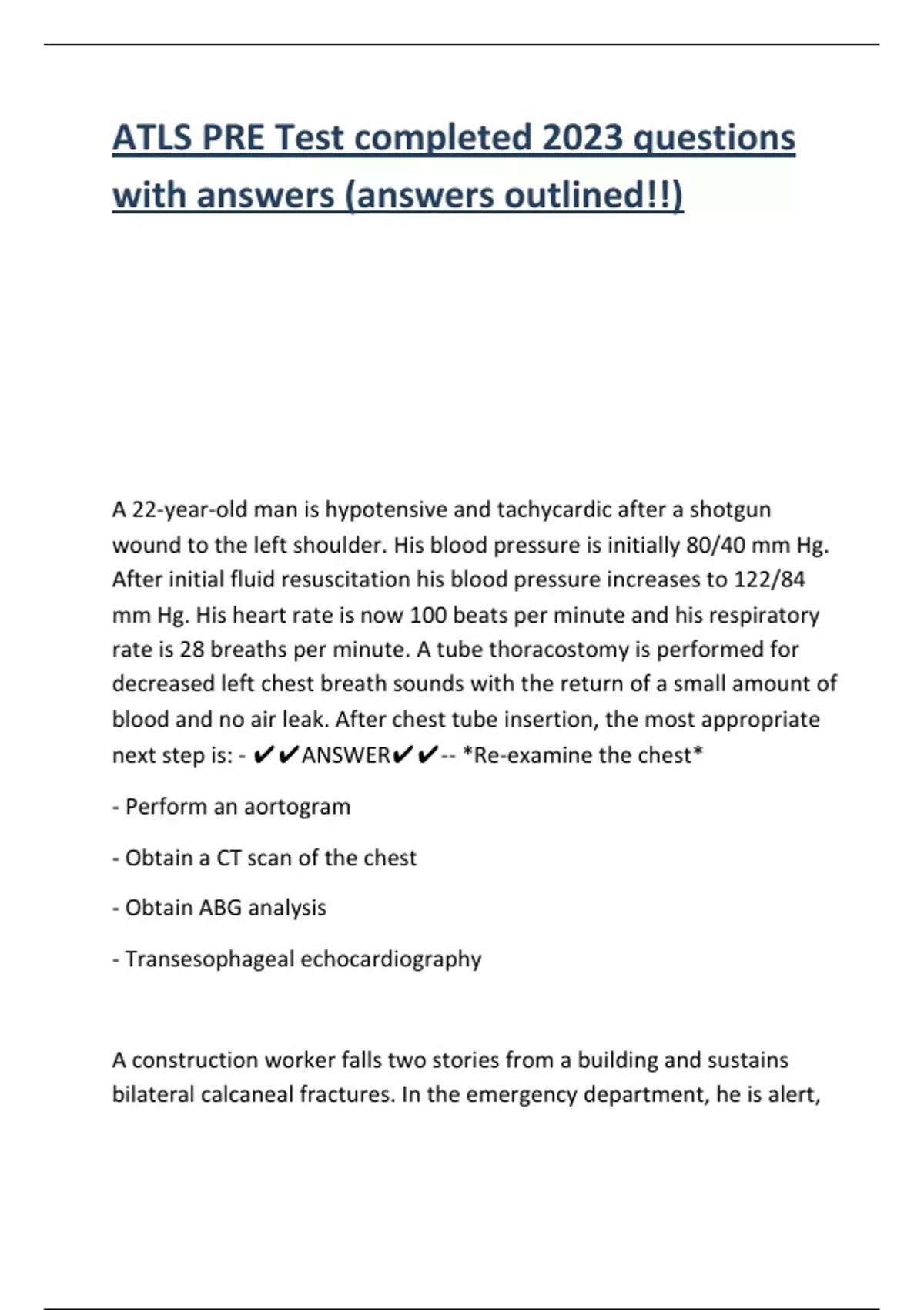 trauma patient? - ✔✔ANSWER✔✔-- A patient with a torso gunshot