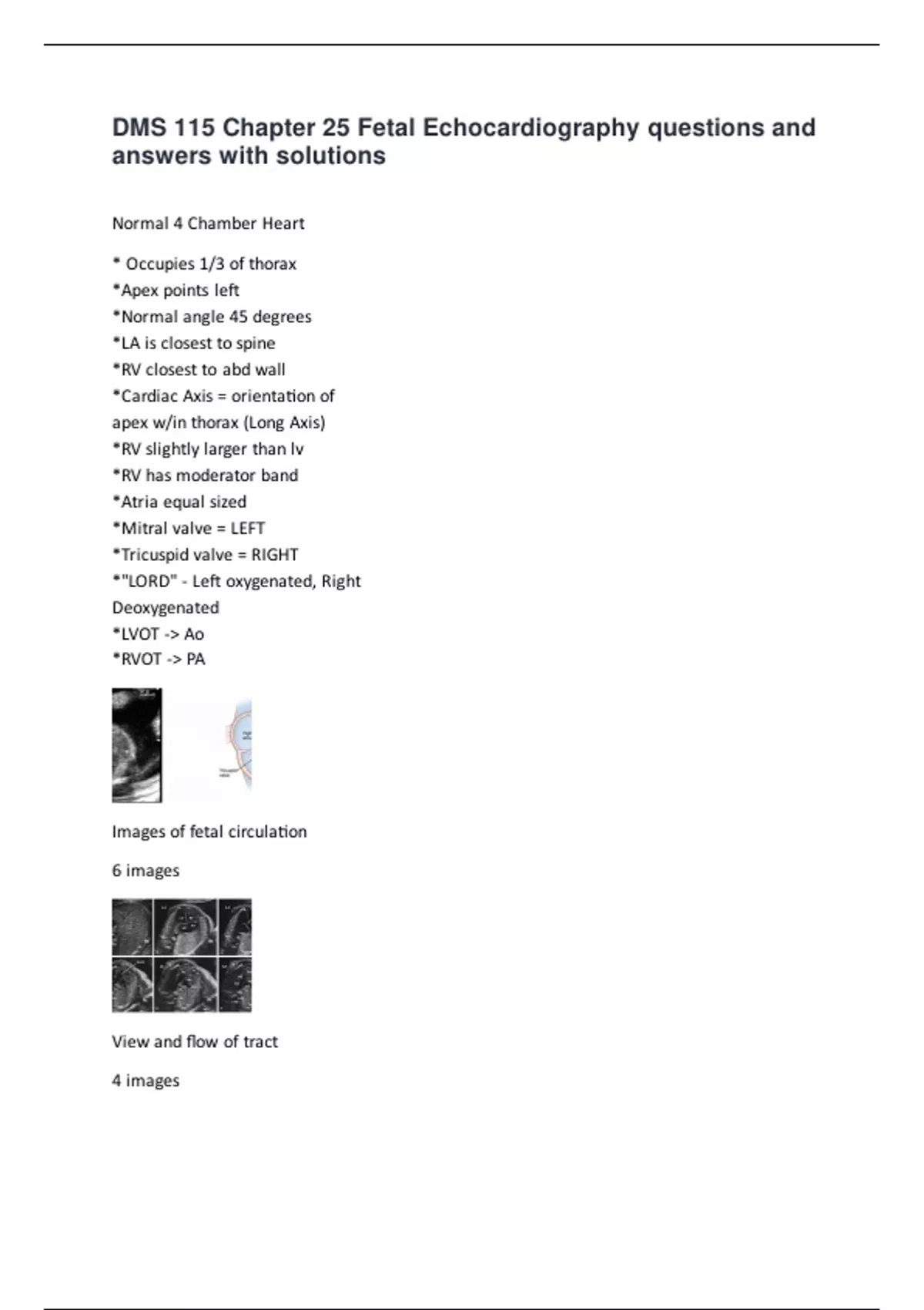 DMS 115 Chapter 25 Fetal Echocardiography questions and answers with solutions.