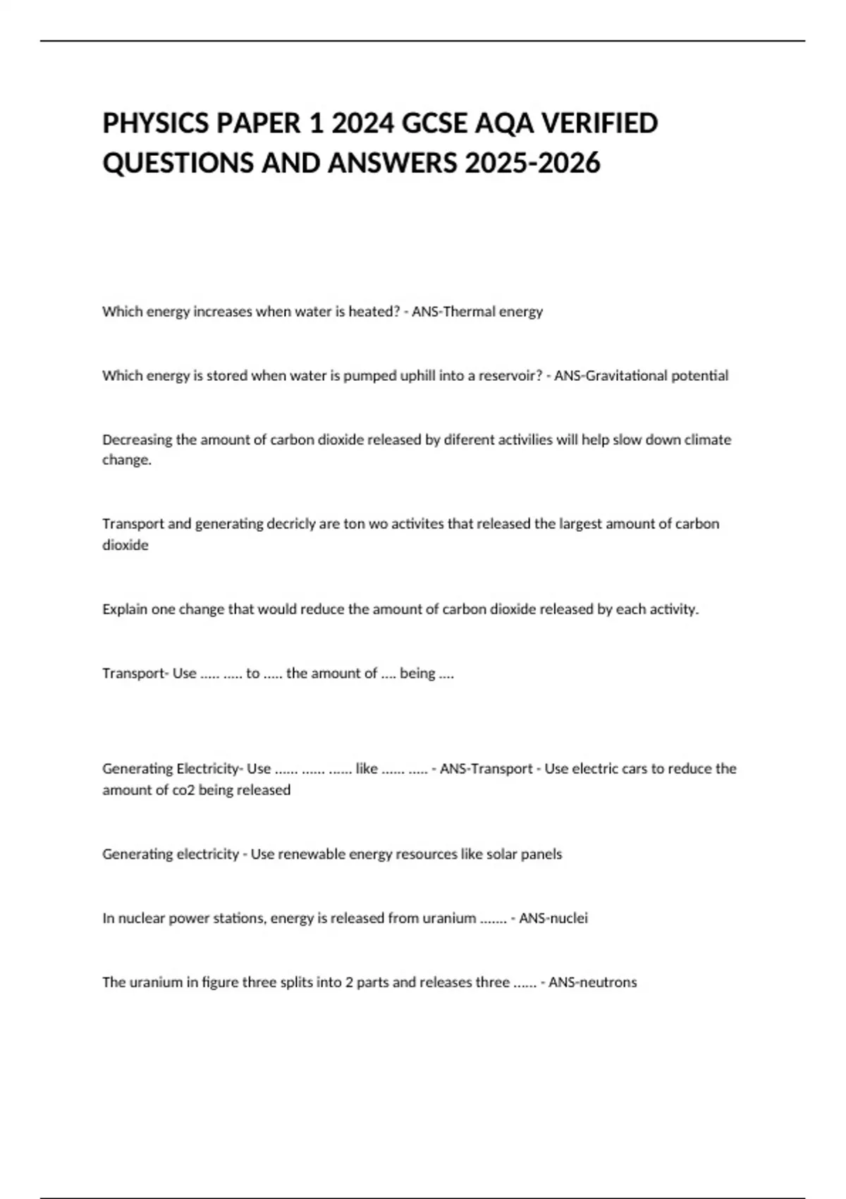 PHYSICS PAPER 1 2024 GCSE AQA VERIFIED