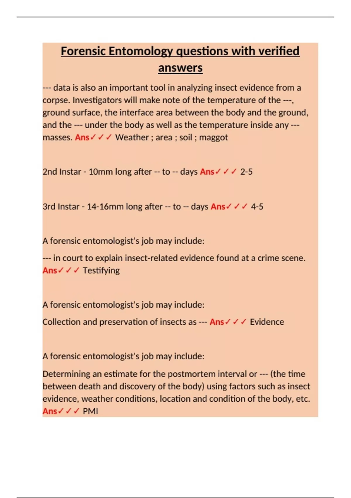 Forensic Entomology questions with verified