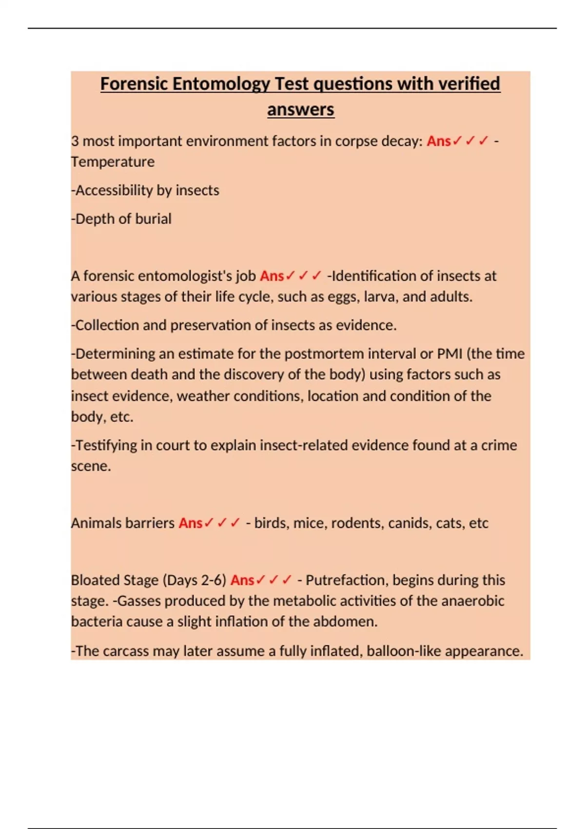 3 most important environment factors in corpse decay: Ans✓✓✓ -
