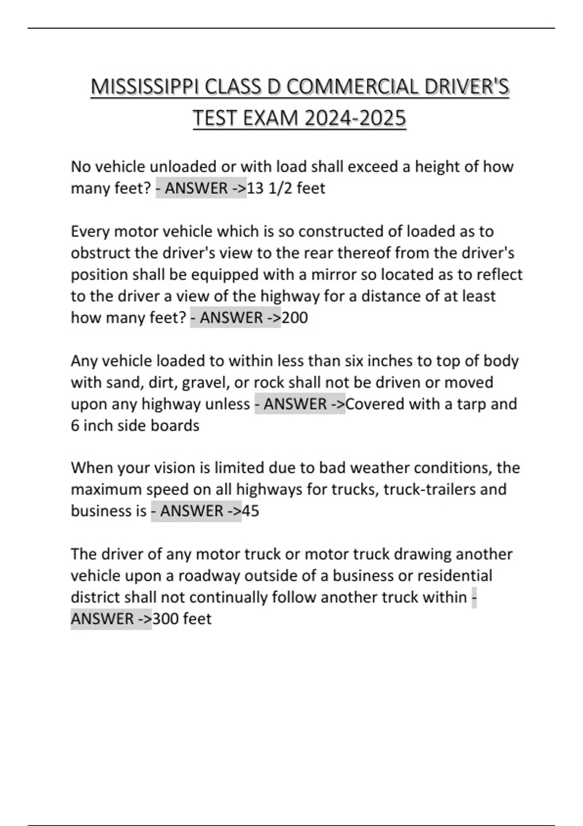 MISSISSIPPI CLASS D COMMERCIAL DRIVER'S