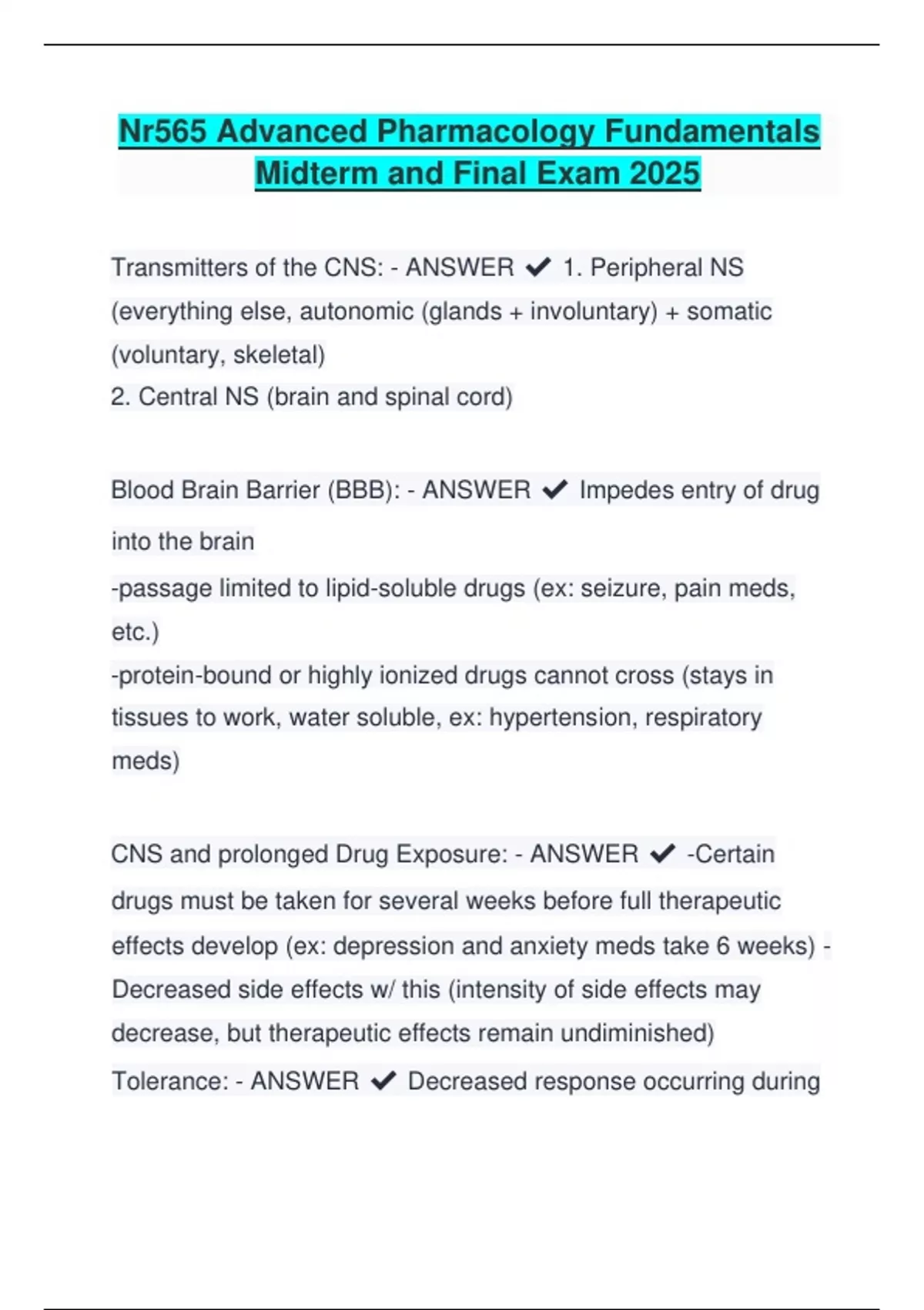 Blood Brain Barrier (BBB): - ANSWER ✔️ Impedes entry of drug