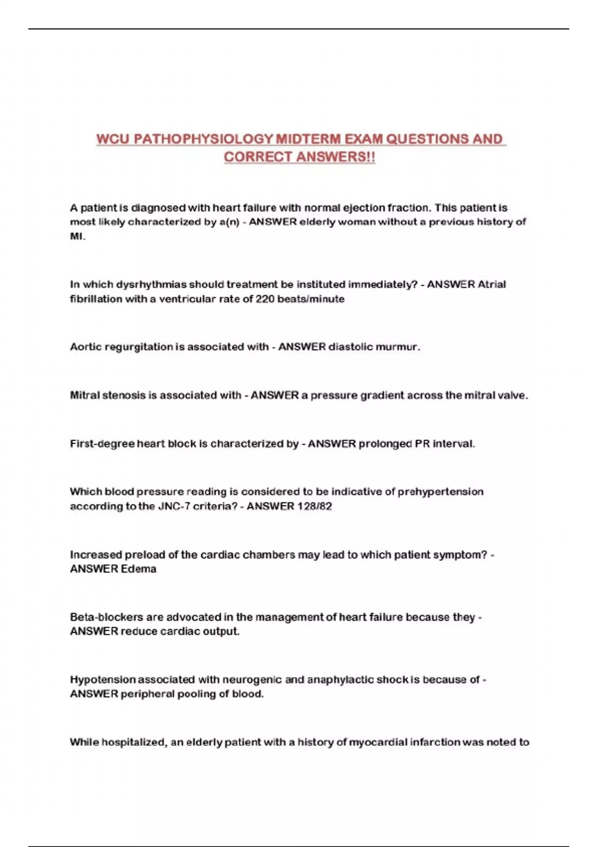 WCU PATHOPHYSIOLOGY MIDTERM EXAM QUESTIONS AND CORRECT ANSWERS!!...