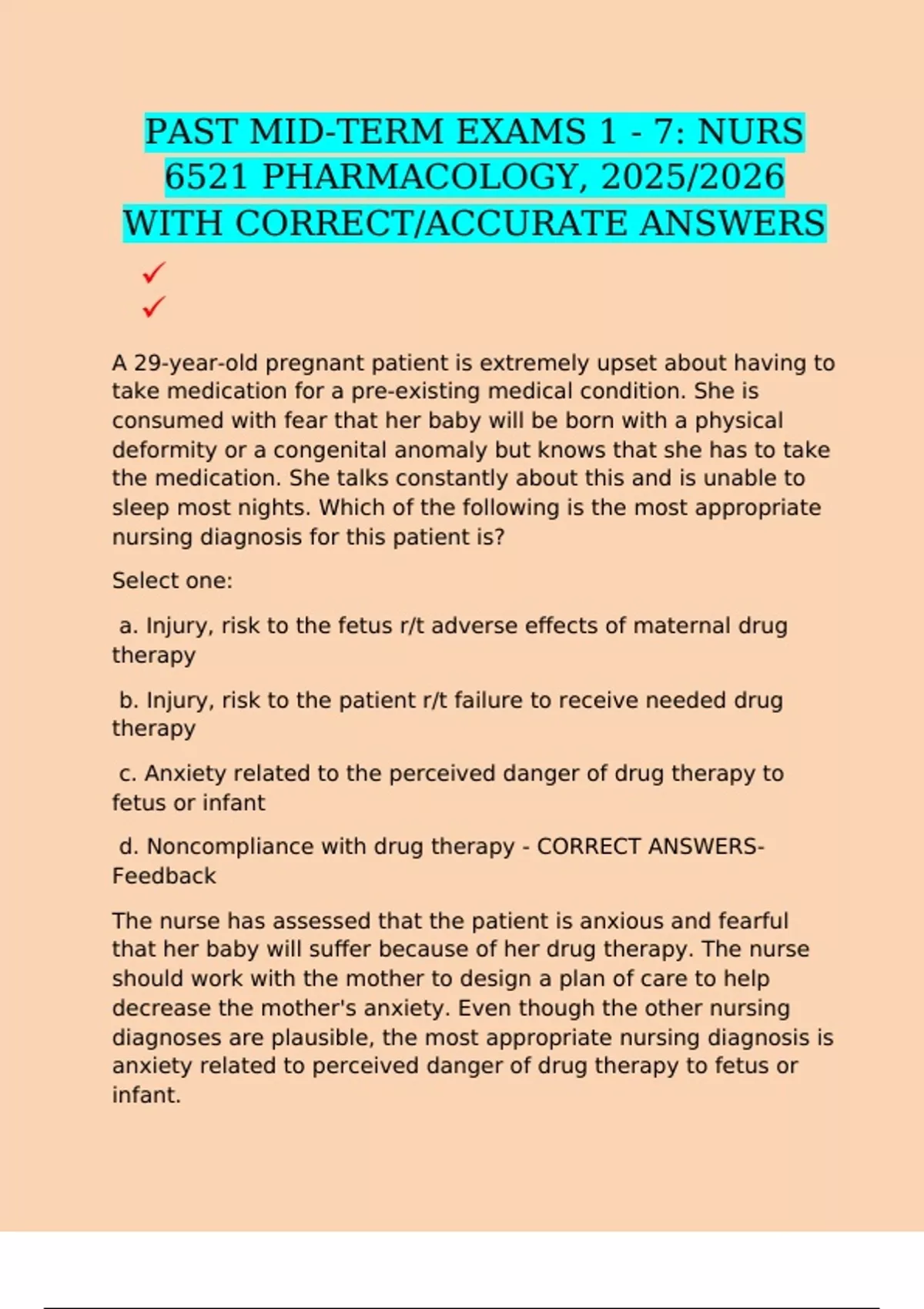 d. Anxiety due to diagnosis of hypertension - CORRECT