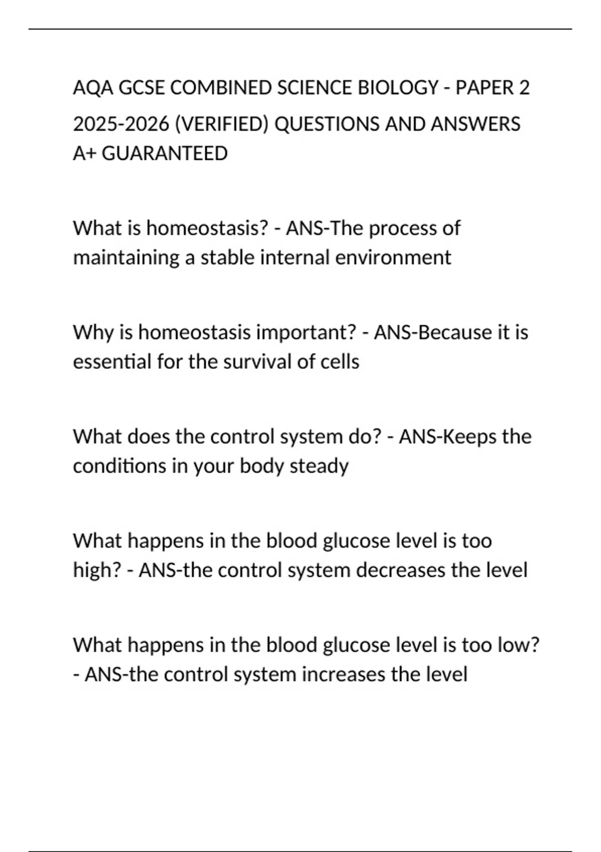 AQA GCSE COMBINED SCIENCE BIOLOGY - PAPER 2 (VERIFIED) QUESTIONS AND ANSWERS A+ GUARANTEED