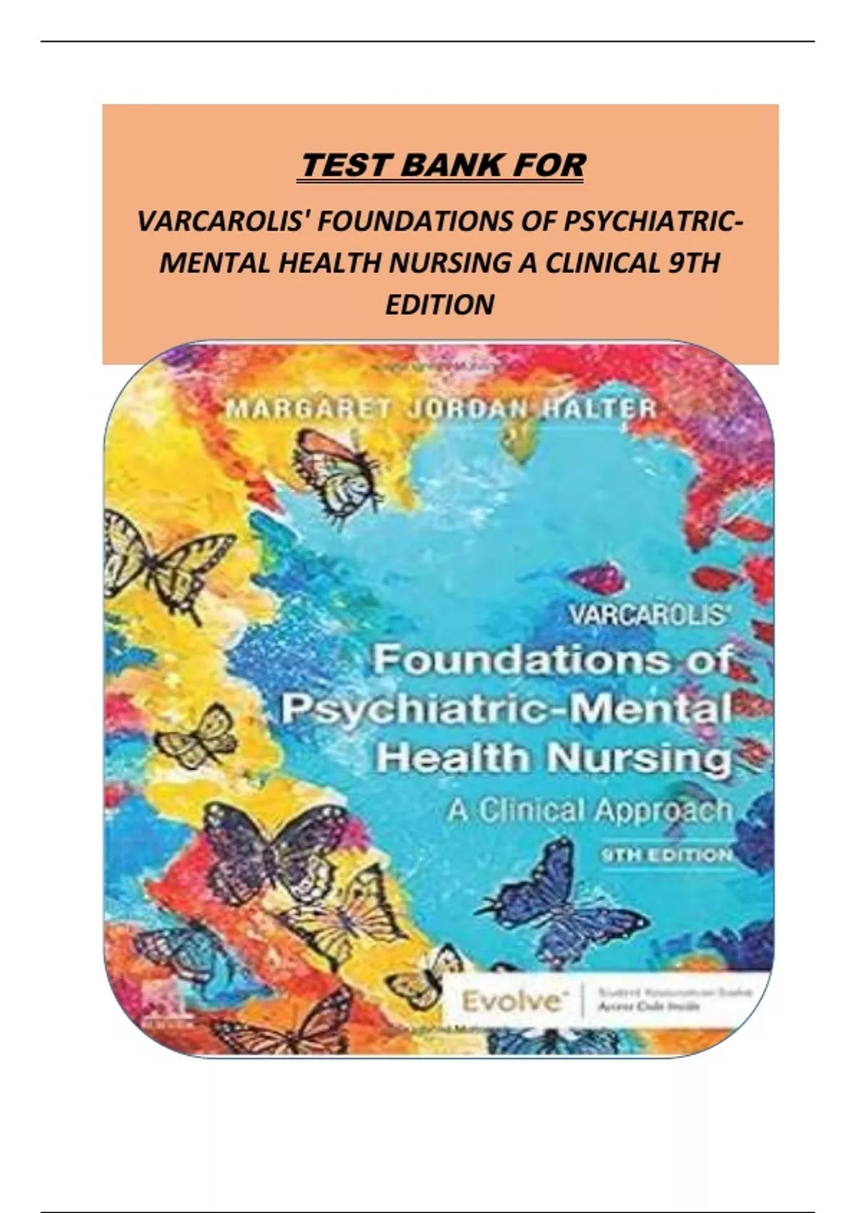 TEST BANK FOR VARCAROLIS' FOUNDATIONS OF PSYCHIATRIC-MENTAL HEALTH NURSING A CLINICAL 9TH EDITION TEST BANK FOR VARCAROLIS' FOUNDATIONS OF PSYCHIATRIC-MENTAL HEALTH NURSING A CLINICAL 9TH EDITION