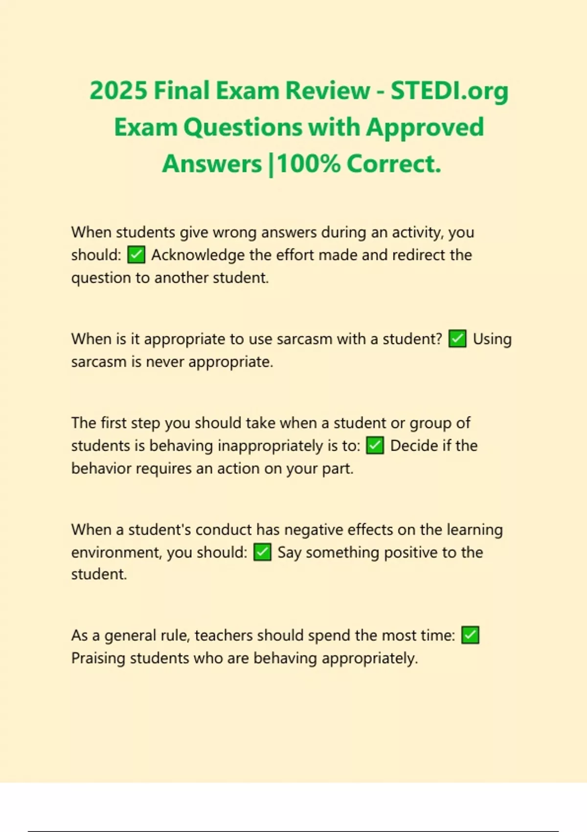 2025 Final Exam Review - STEDI.org Exam Questions with Approved Answers |100% Correct.