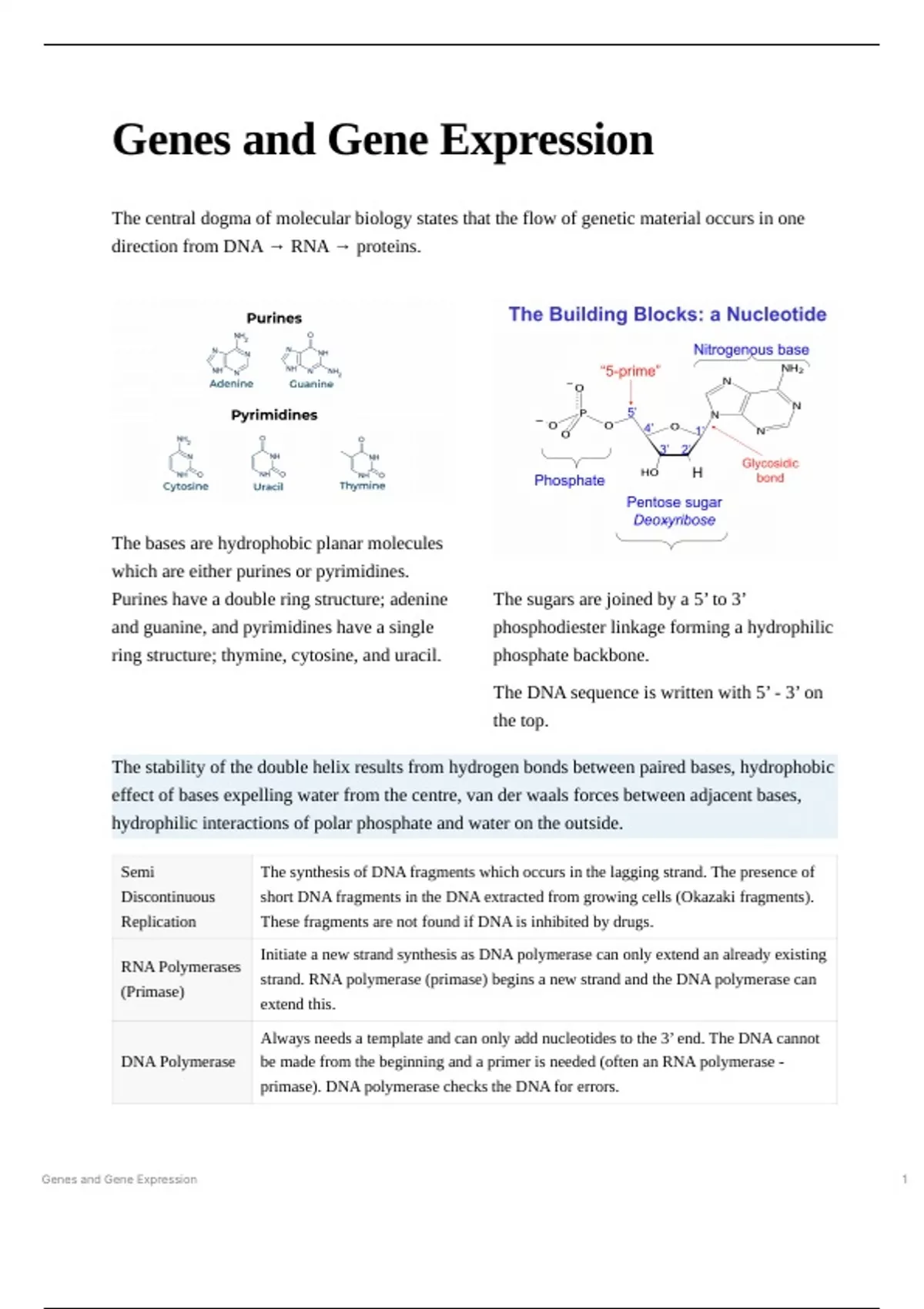 Purines have a double ring structure; adenine The sugars are joined by a 5’ to 3’
