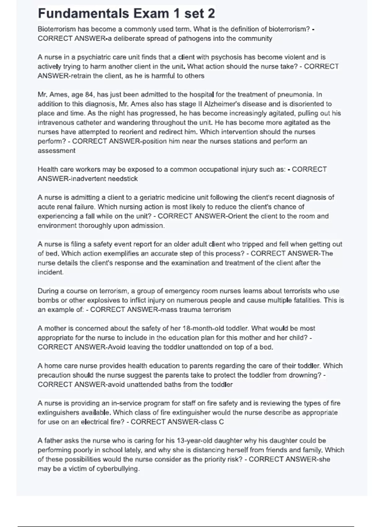 Fundamentals Exam 1 set 2 questions and answers: {LATEST 2025/ 2026 UPDATE} COMPLETE REAL AND AUTHENTIC EXAM {100% CORRECT} RATED A+!!!!