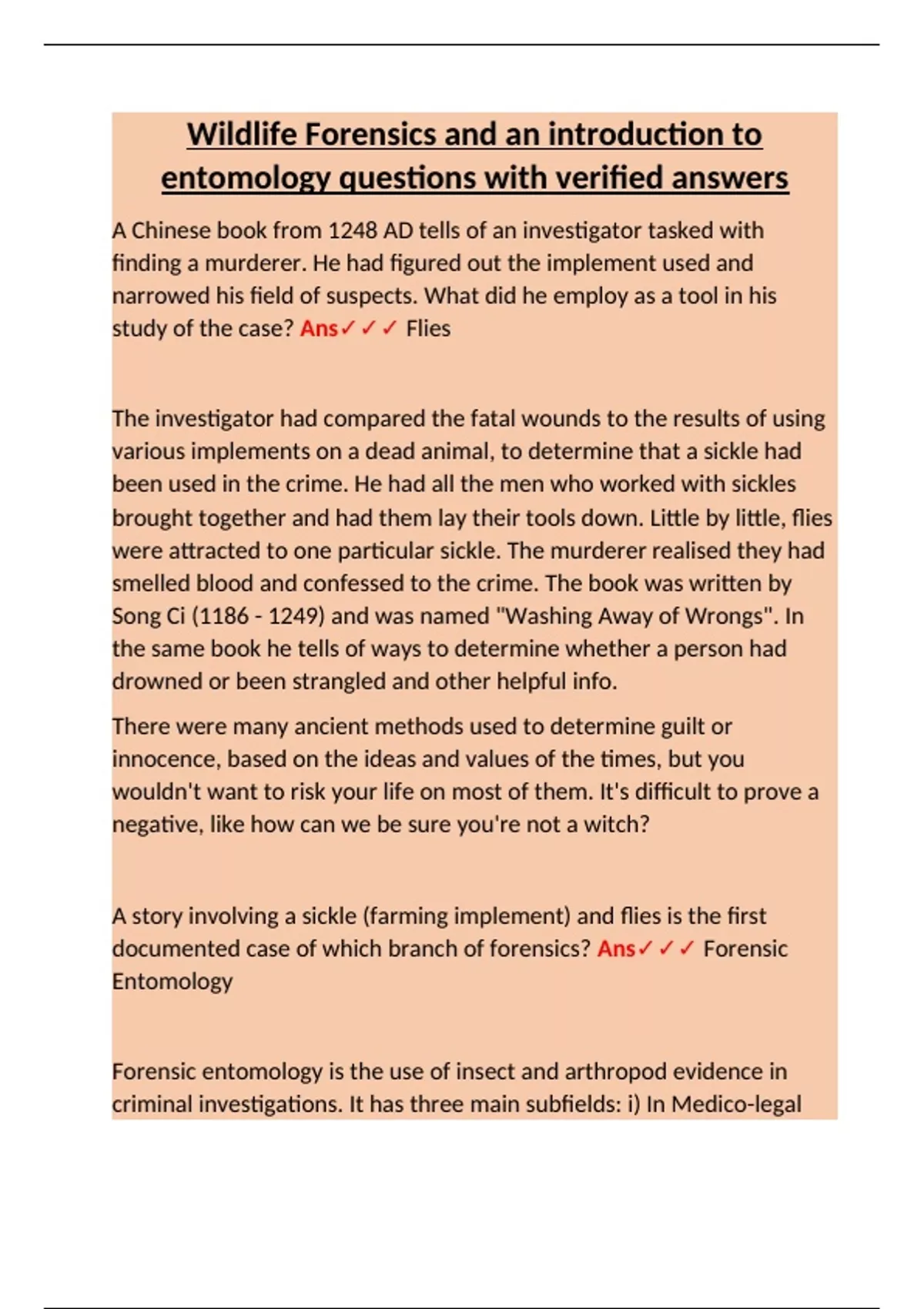 documented case of which branch of forensics? Ans✓✓✓ Forensic