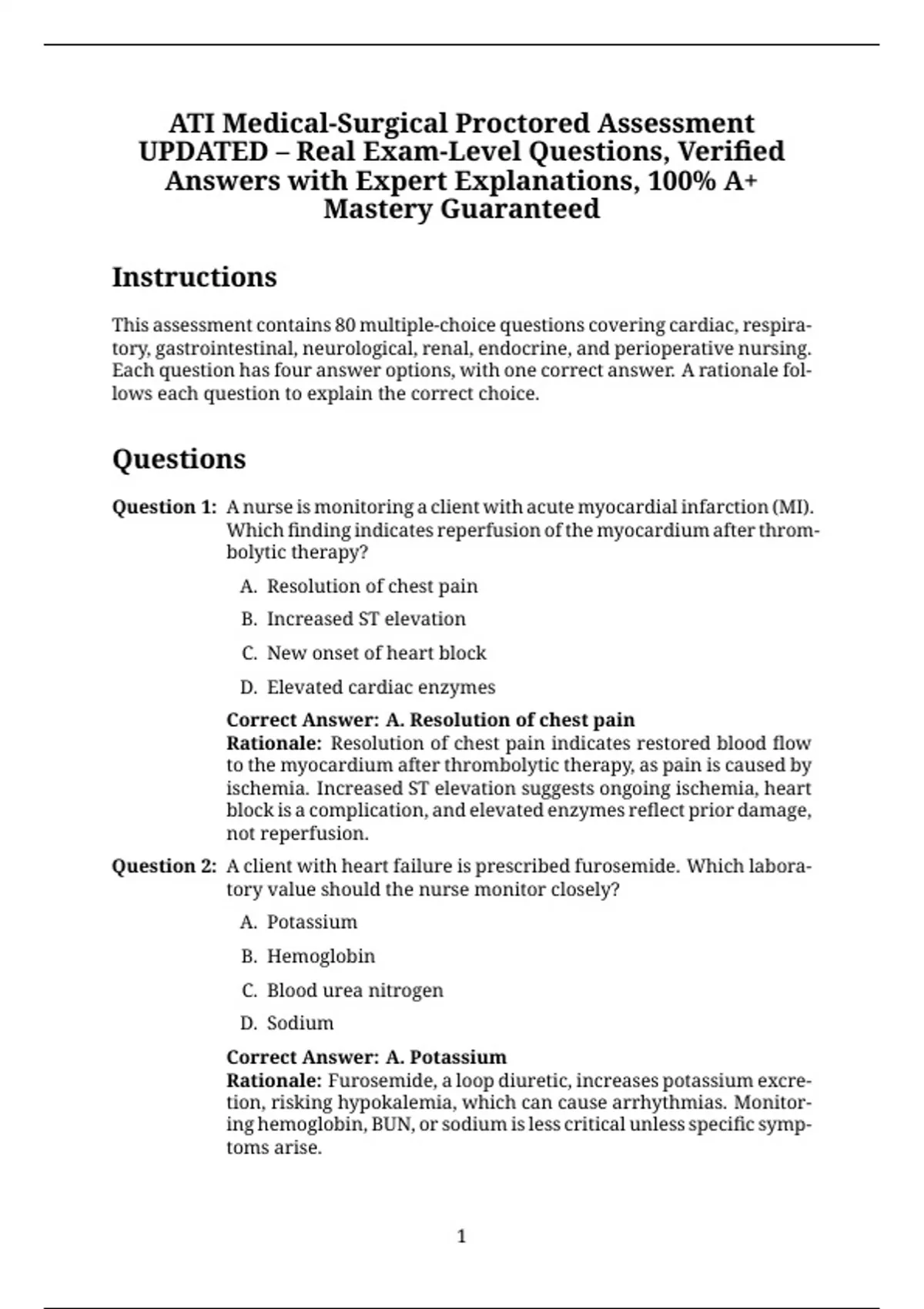 ATI Medical-Surgical Proctored Assessment UPDATED – Real Exam-Level Questions, Verified Answers with Expert Explanations, 100% A+ Mastery Guaranteed