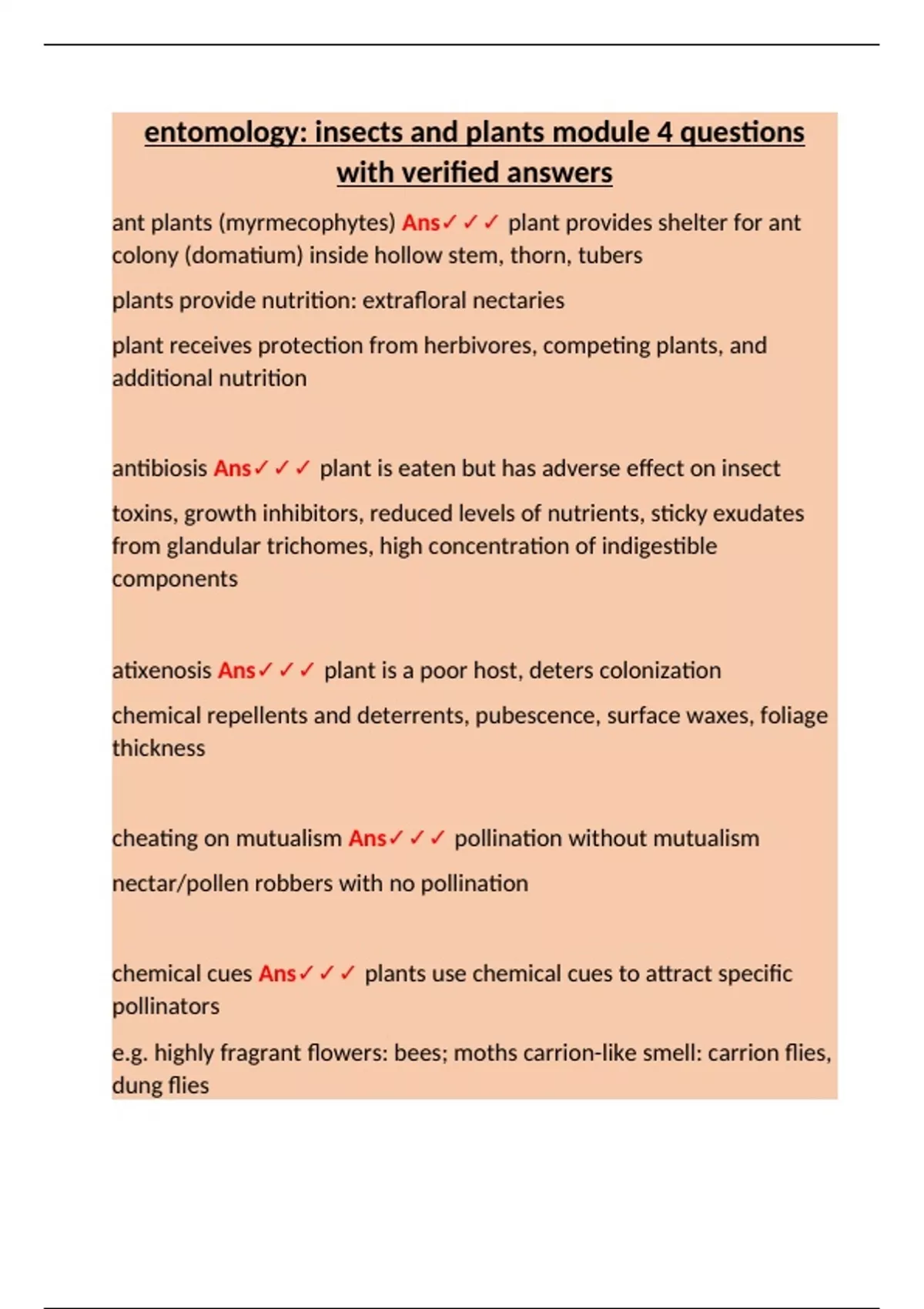 ant plants (myrmecophytes) Ans✓✓✓ plant provides shelter for ant