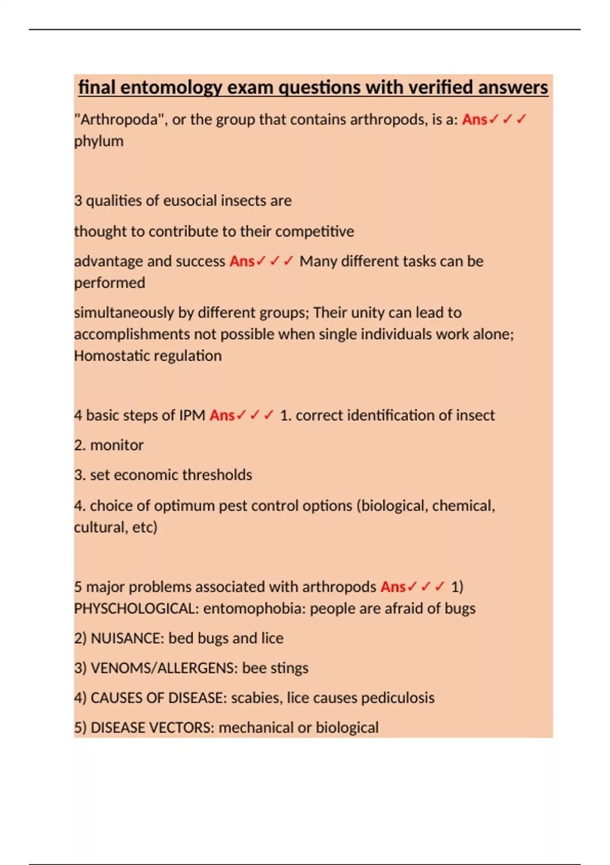 5 major problems associated with arthropods Ans✓✓✓ 1)