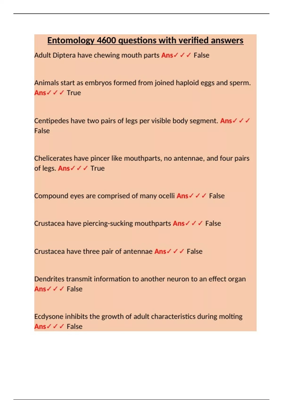 Crustacea have piercing-sucking mouthparts Ans✓✓✓ False