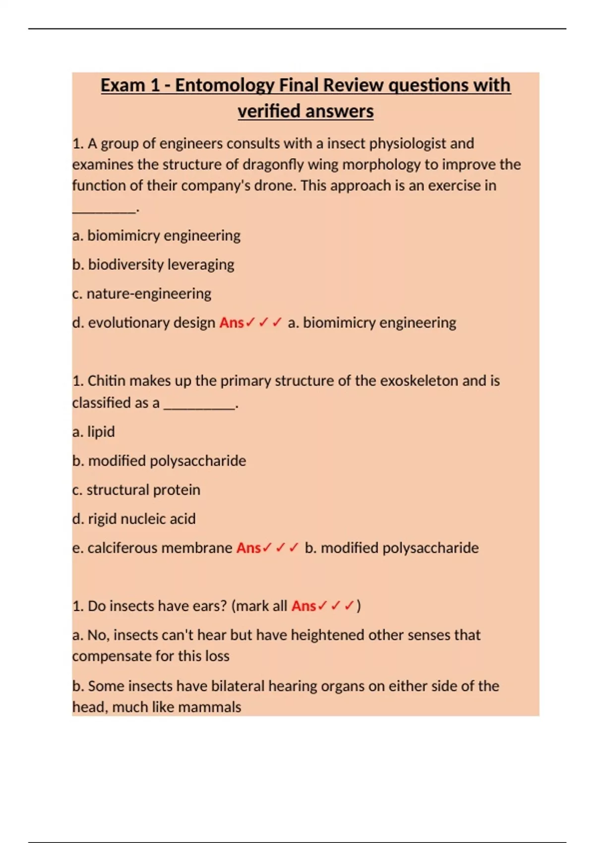 1. Do insects have ears? (mark all Ans✓✓✓)