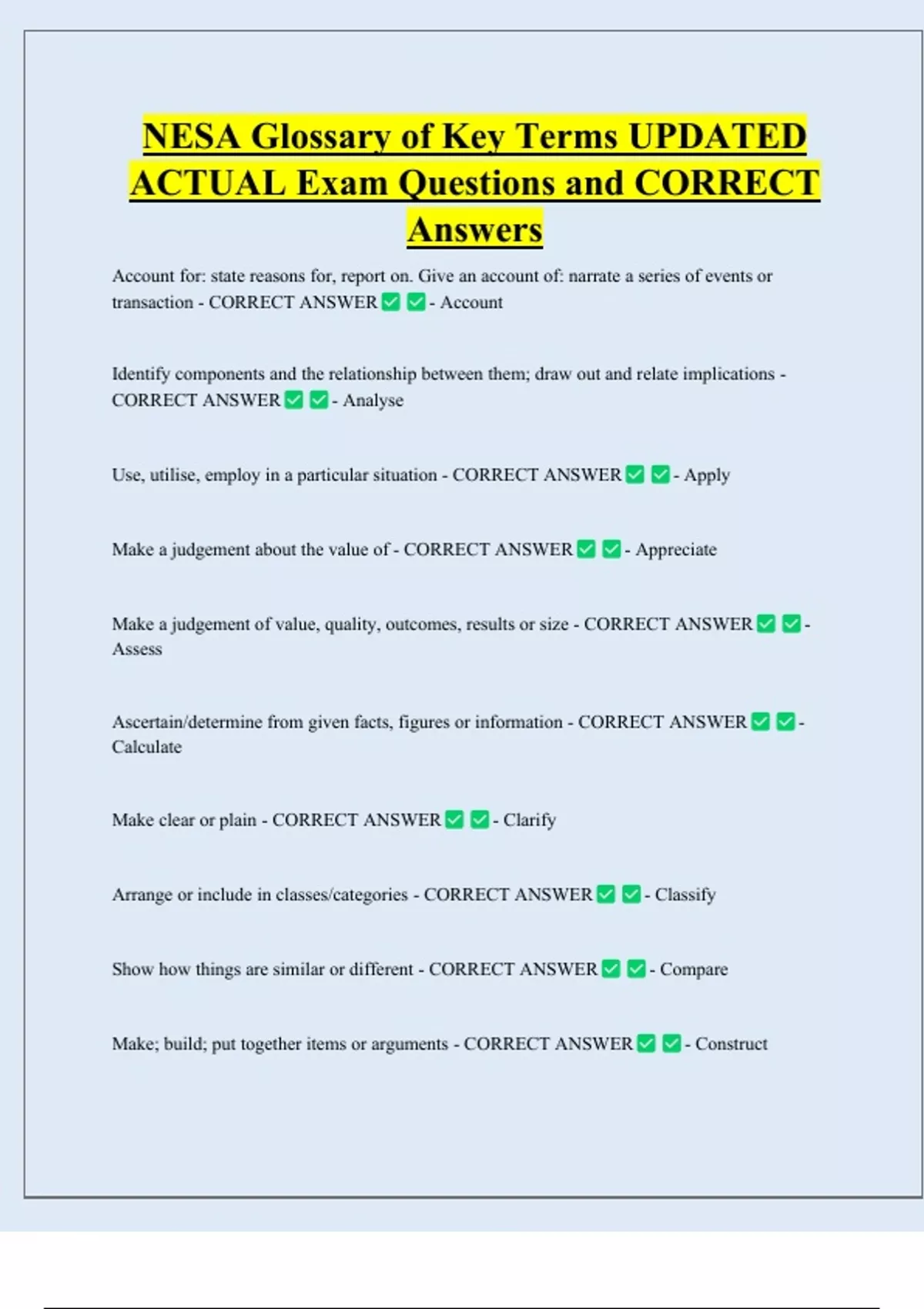 ACTUAL Exam Questions and CORRECT