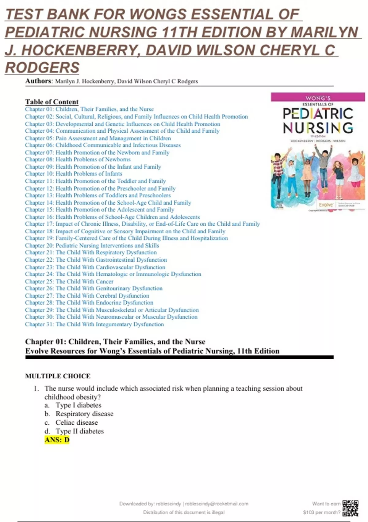 Authors: Marilyn J. Hockenberry, David Wilson Cheryl C Rodgers