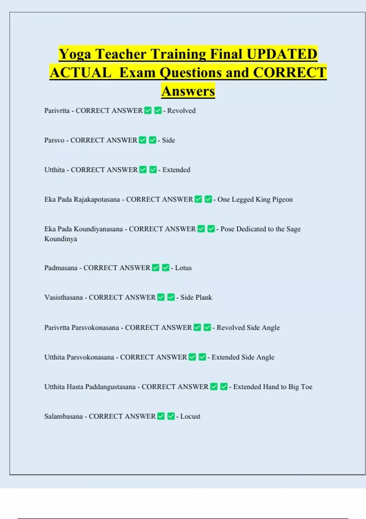 Utthita Parsvokonasana - CORRECT ANSWER - Extended Side Angle