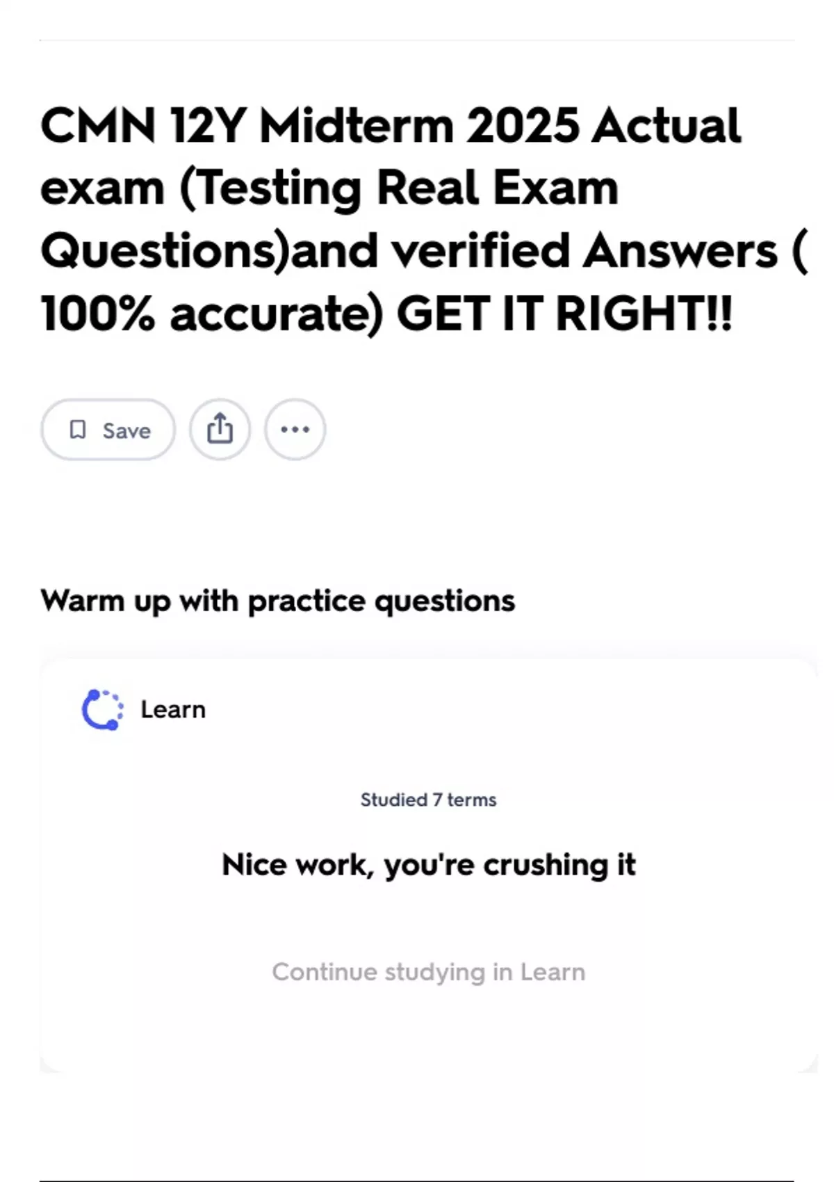 Continue studying in Learn