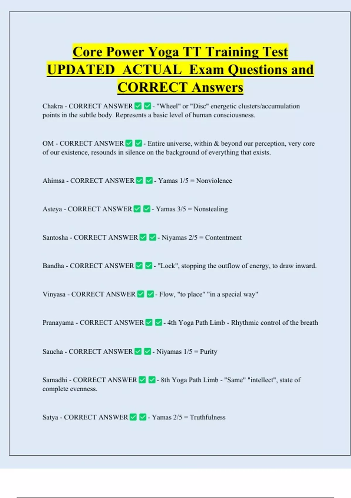 Saucha - CORRECT ANSWER - Niyamas 1/5 = Purity