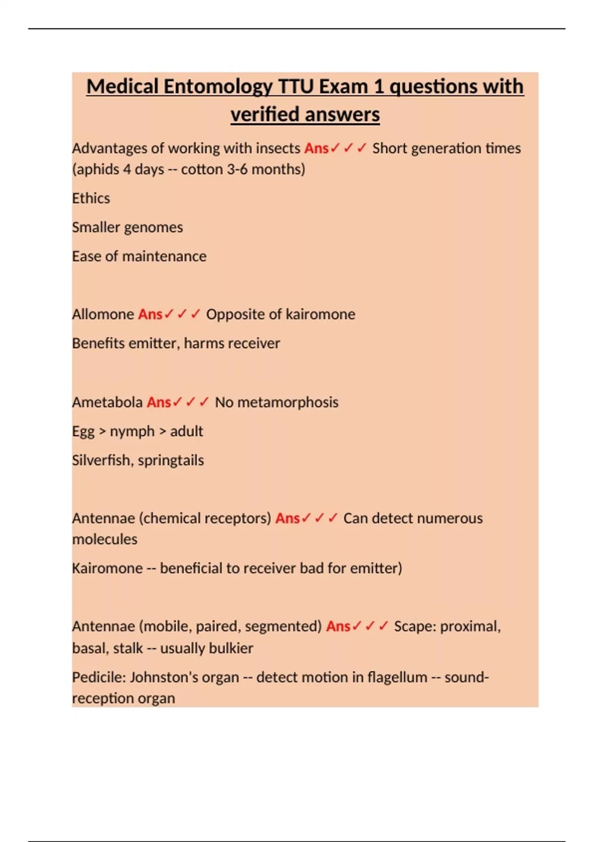 Class Ans✓✓✓ Insecta