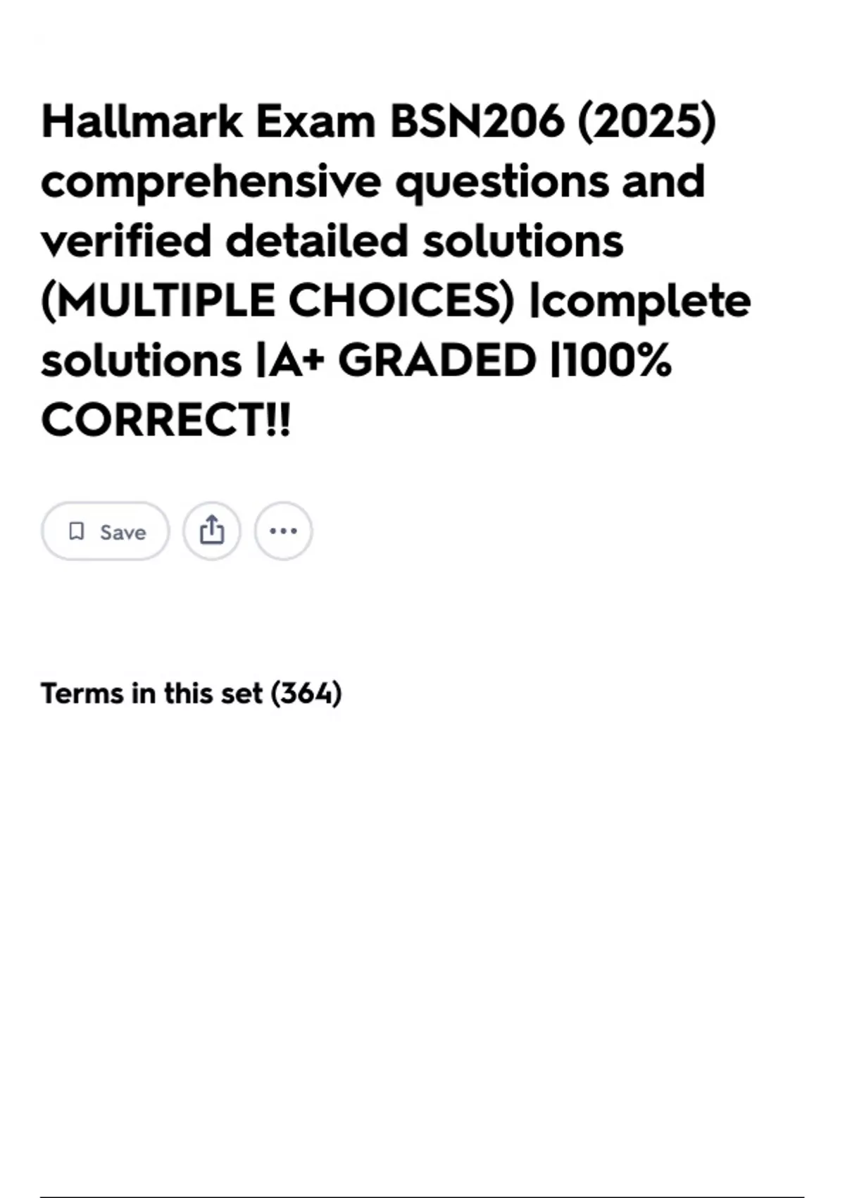 Hallmark Exam BSN206 (2025) comprehensive questions and verified detailed solutions (MULTIPLE CHOICES) |complete solutions |A+ GRADED |100% CORRECT!!
