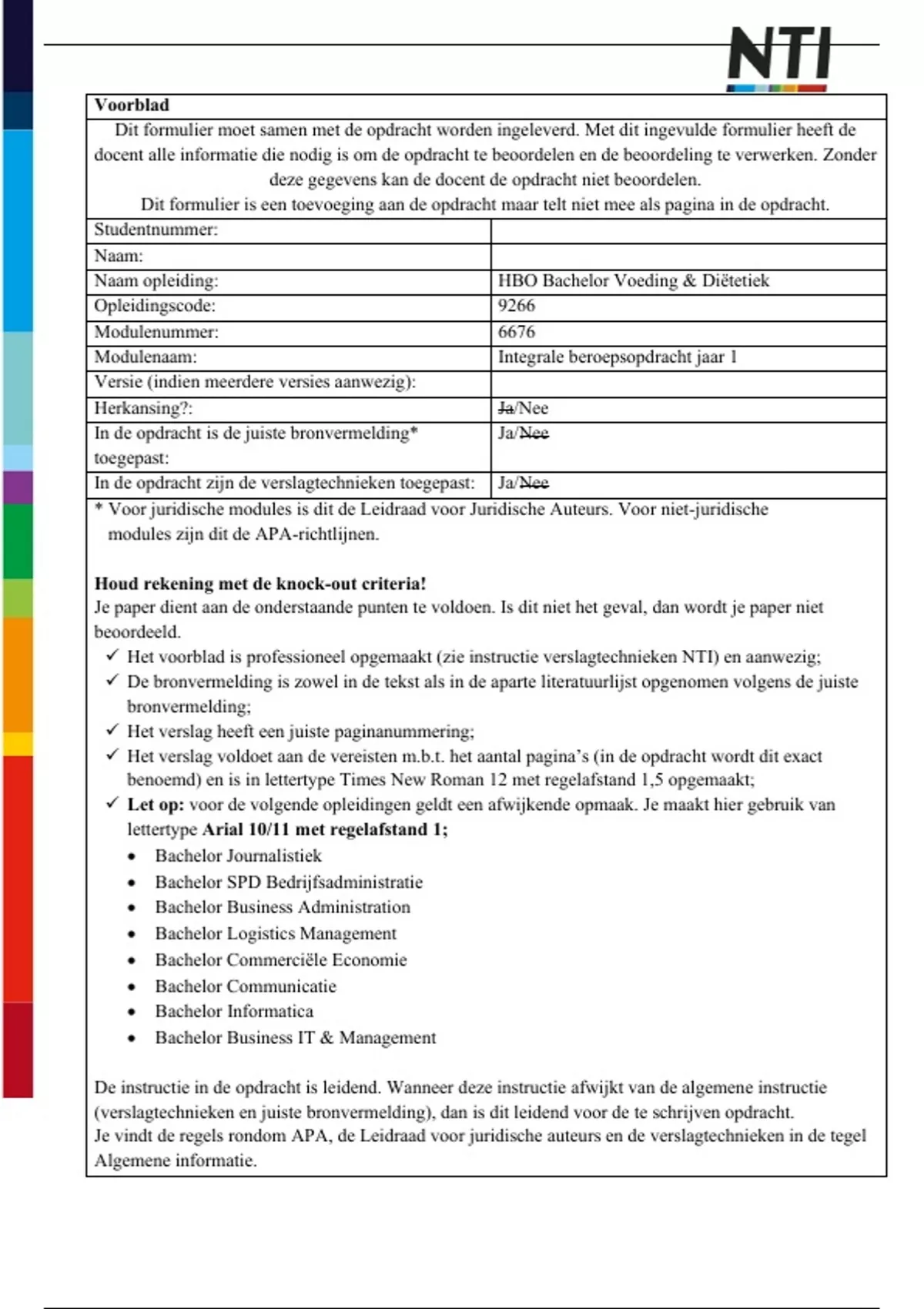 ✓ Het voorblad is professioneel opgemaakt (zie instructie verslagtechnieken NTI) en aanwezig;