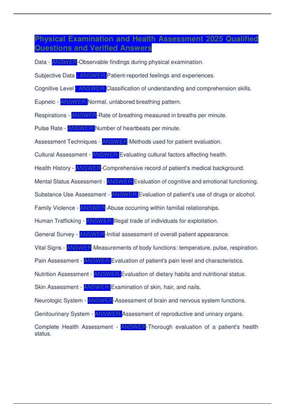 Complete Health Assessment - ANSWER-Thorough evaluation of a patient's health