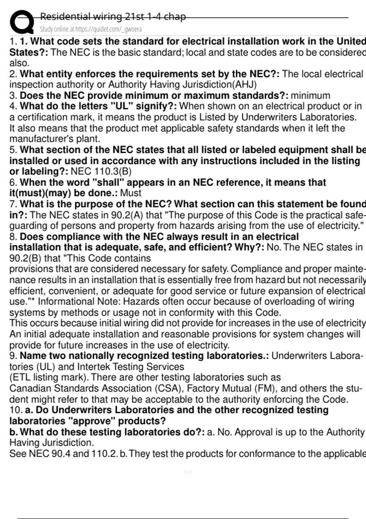2. What entity enforces the requirements set by the NEC?: The local electrical