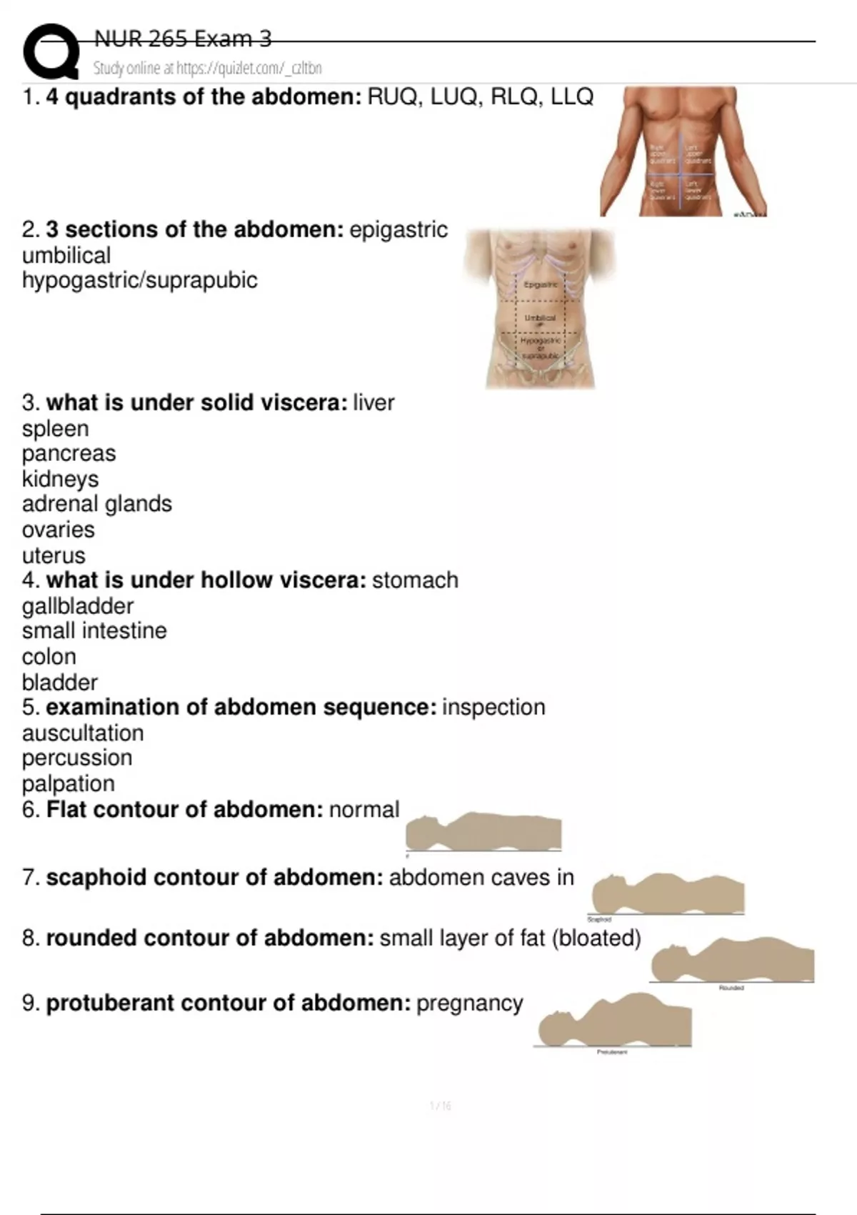 1. 4 quadrants of the abdomen: RUQ, LUQ, RLQ, LLQ