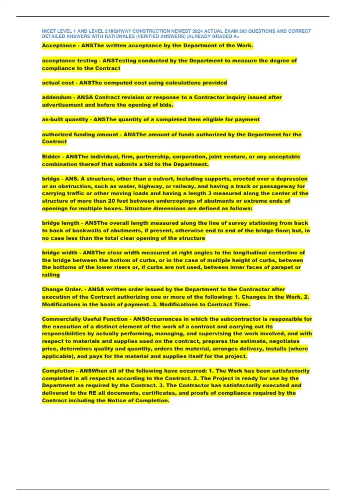NICET LEVEL 1 AND LEVEL 2 HIGHWAY CONSTRUCTION NEWEST 2024 ACTUAL EXAM 380 QUESTIONS AND CORRECT