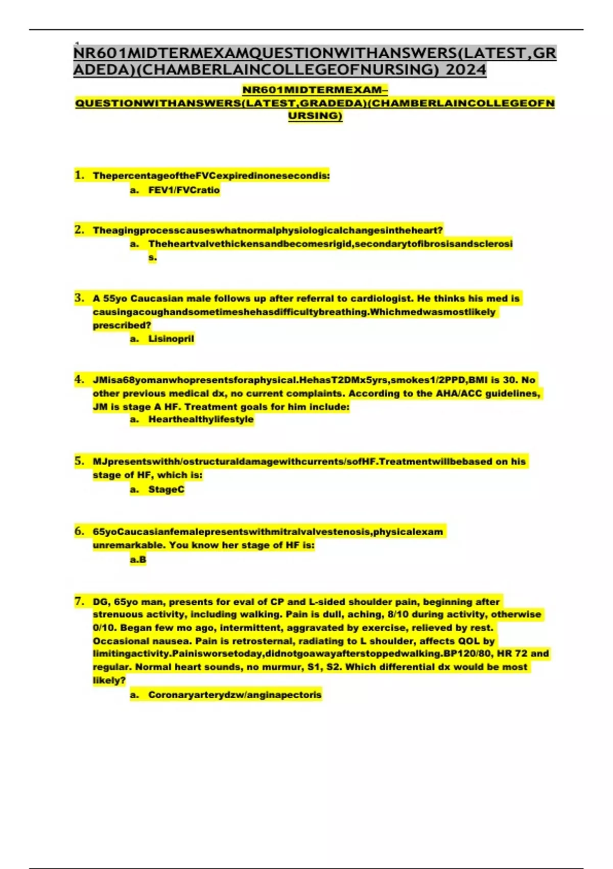 QUESTIONWITHANSWERS(LATEST,GRADEDA)(CHAMBERLAINCOLLEGEOFN